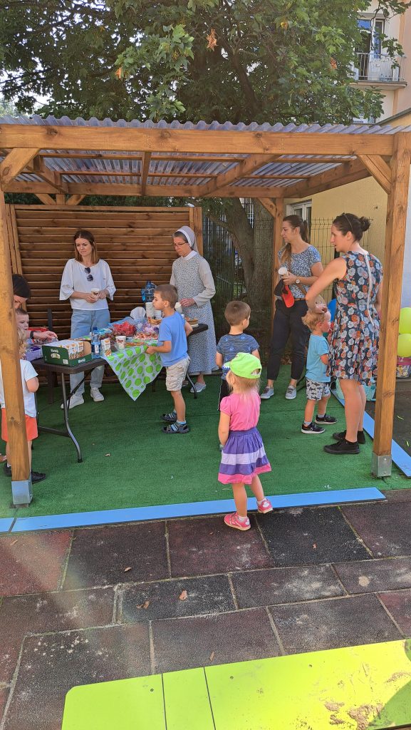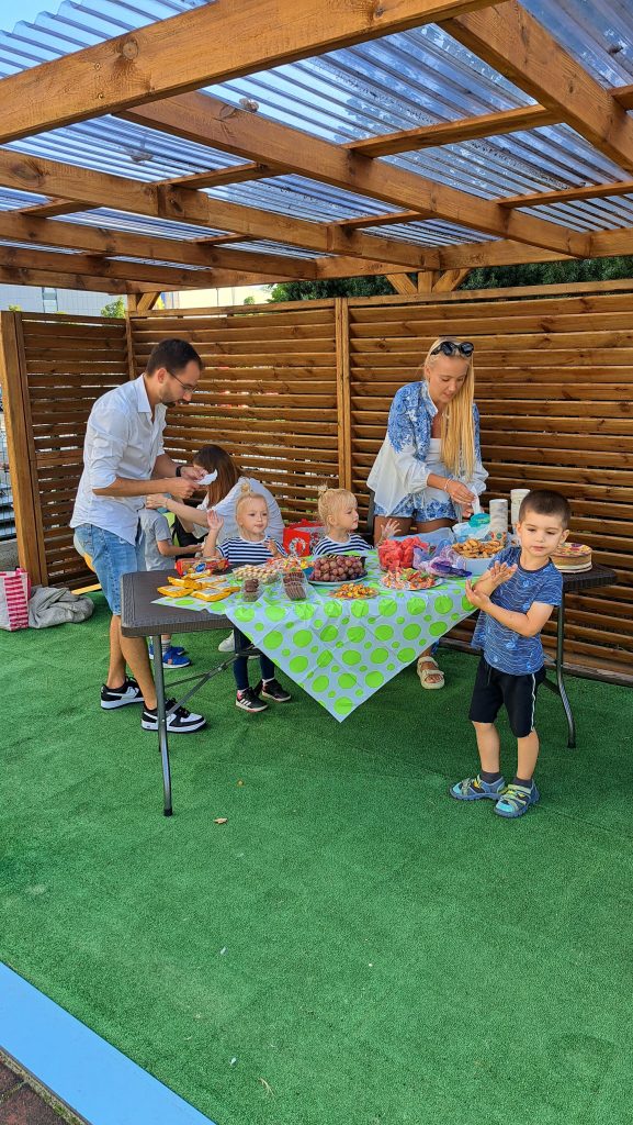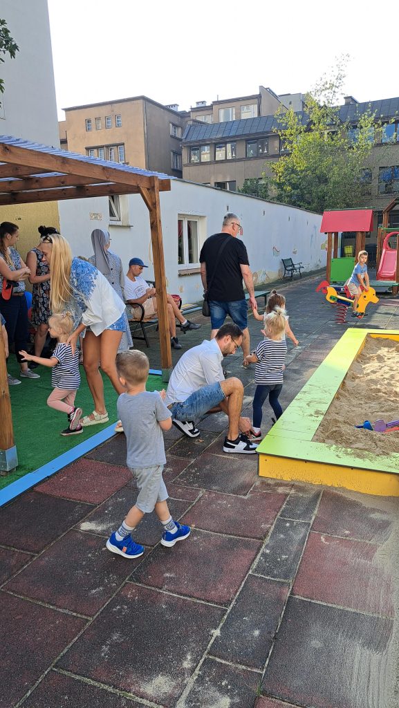 11 września odbyło się spotkanie integracyjne rodziców naszej grupy:) Zorganizowaliśmy je w naszym ogródku przedszkolnym, gdzie dzieci mogły swobodnie się bawić. Były ciekawe rozmowy, wspólne zabawy z dziećmi, a nawet poczęstunek, który przygotowali rodzice. Na koniec dzieci otrzymały baloniki i drobny upominek:). Te wspólnie spędzone dwie godziny to był dla wszystkich bardzo wartościowy czas:) Bardzo dziękujemy rodzicom za udział i współorganizację:)