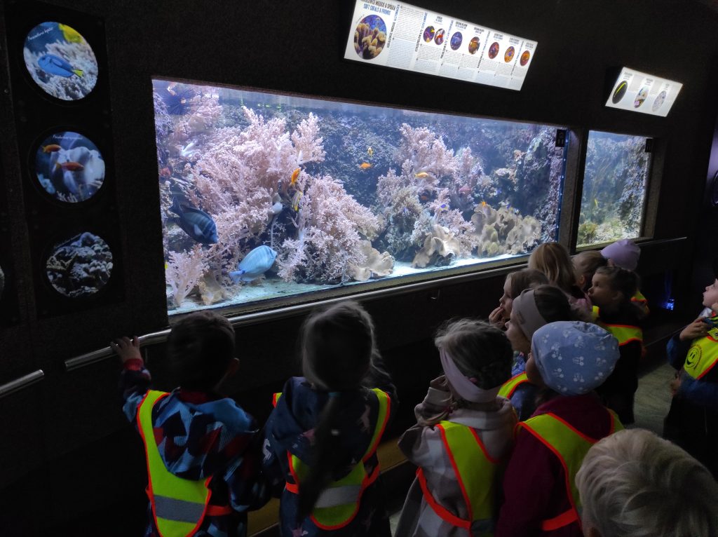 Gdy już nauczyliśmy zasad bezpiecznego poruszania się w miejscach publicznych nadszedł czas na pierwszą wycieczkę 🙂 Jako mieszkańcy Gdyni wybraliśmy się do obowiązkowego punktu na mapie naszego miasta – Akwarium Gdyńskiego. Dzieci były pod ogromnym wrażeniem różnorodności rybek – ich wielkość, kształt oraz kolory bardzo zaskakiwały dzieci. Największym zaskoczeniem jednak był węgorz elektryczny – mieliśmy okazję nie tylko go zobaczyć, ale również usłyszeć ! To była niesamowita wycieczka <3