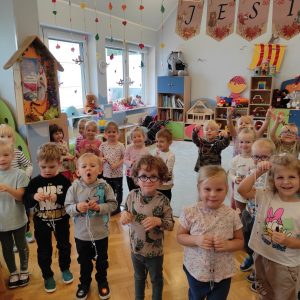 W październiku dzieci z grupy niebieskiej uczą się modlić na różańcu. Codziennie poświęcamy jedną modlitwę, aby wspólnie ofiarować swoje intencje. Dzieci bardzo chętnie biorą udział w modlitwie i szybko zapamiętują w jaki sposób…