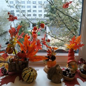 Dziś przynieśliśmy do przedszkola prawdziwe skarby jesieni. Powstał z nich nasz pierwszy, piękny, jesienny kącik przyrody.