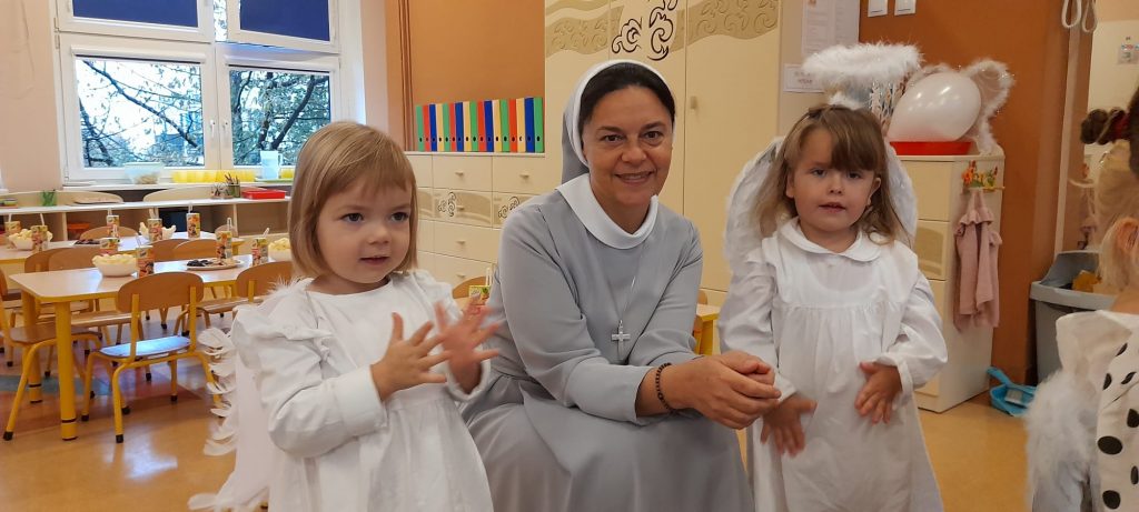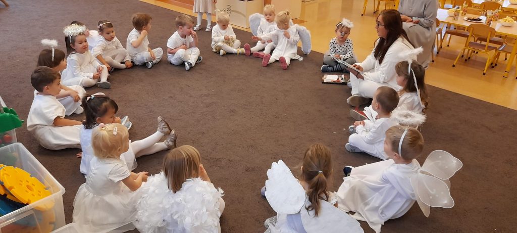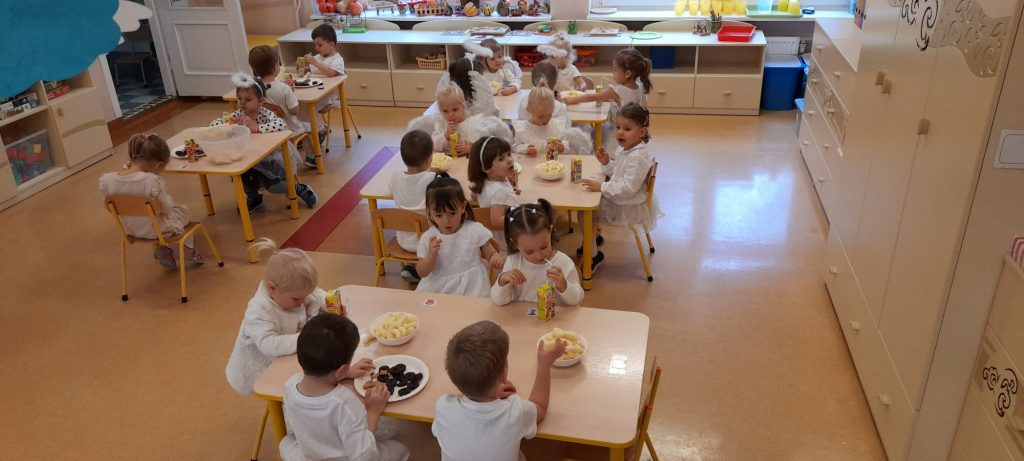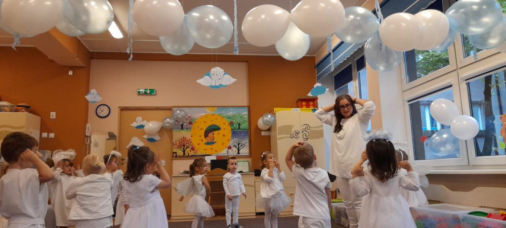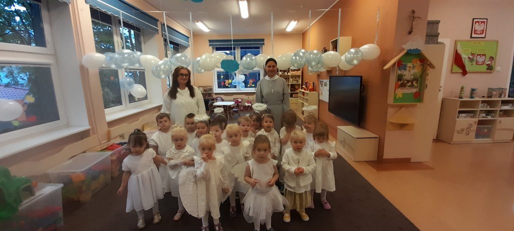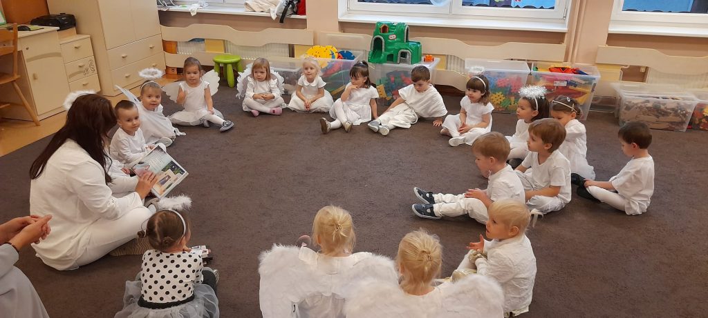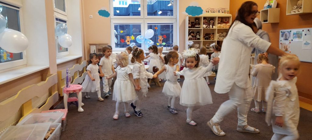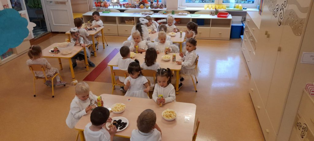W grupie waniliowej odbył się bal wszystkich świętych. W trakcie balu dzieci słuchały opowiadania: „Anioł u Maryi” i oglądały zdjęcia Świętych. Następnie była świetna zabawa przy piosence ,,Taki mały taki duży” z Arki Noego oraz wiele innych zabaw i tańców. Podczas balu nie zabrakło również słodkiego poczęstunku.
