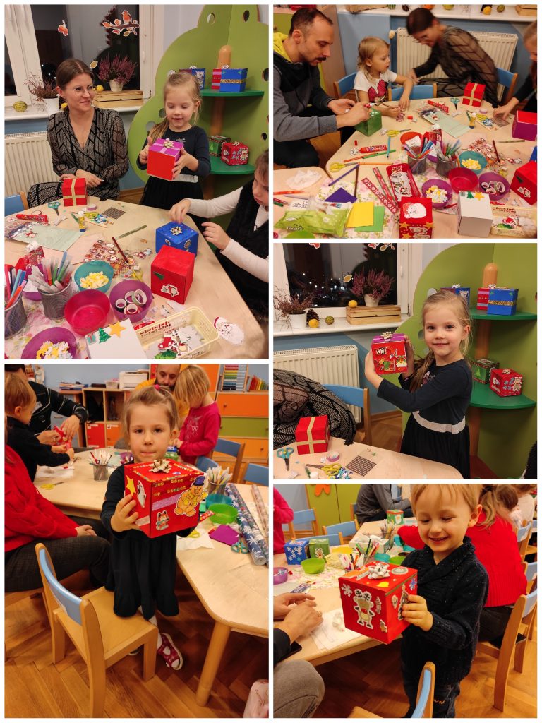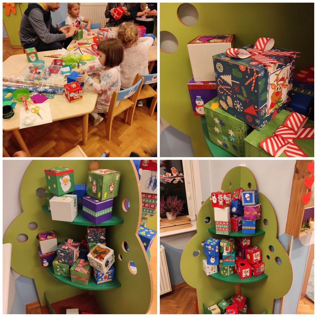 W czwartkowe popołudnie Pani Ola miała okazję spotkać się wspólnie z rodzicami, aby udekorować „Pudełeczka Radości”. Efektem naszej ciężkiej pracy jest, aż 80 pięknie ozdobionych pudełek, które w okresie Świątecznym trafią do Podopiecznych Puckiego Hospicjum, najmłodszych pacjentów Szpitala Morskiego im. PCK w Gdyni, a także podopiecznych Domu Seniora. Dlaczego pudełeczka radości ? Ponieważ na sam widok pojawia się uśmiech na twarzy, a w środku znajdziemy same pyszności 😉