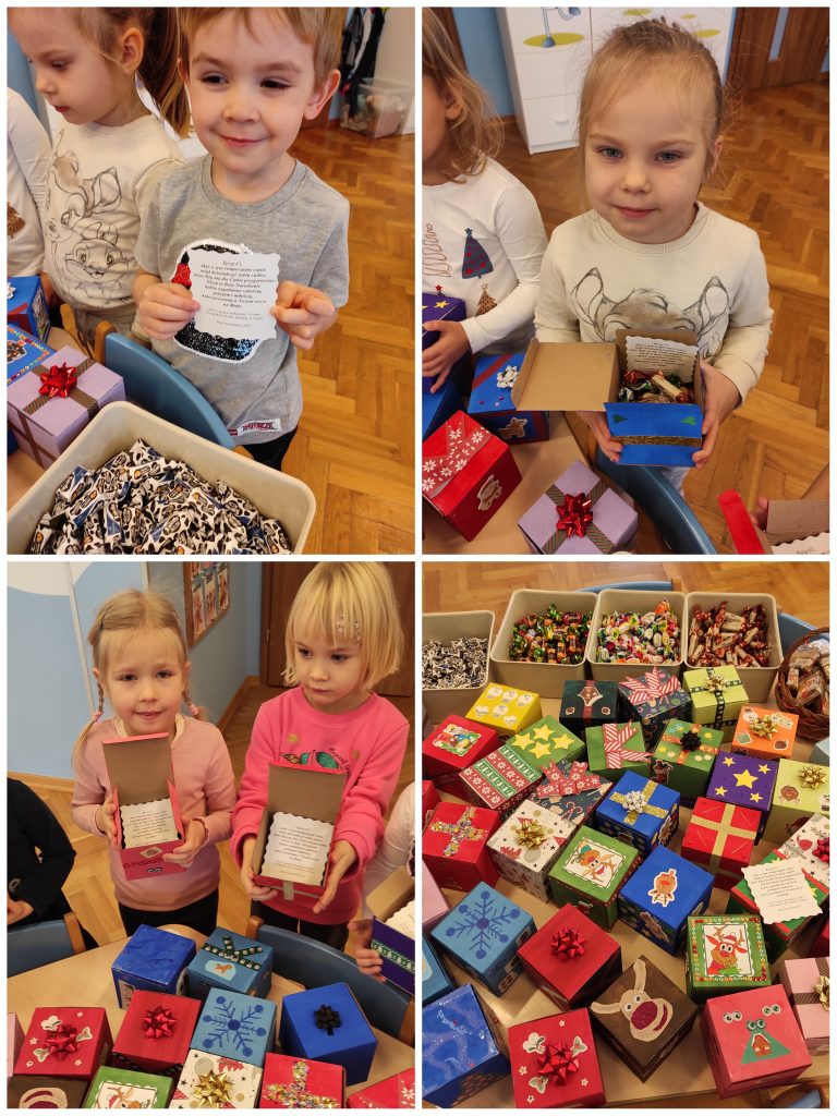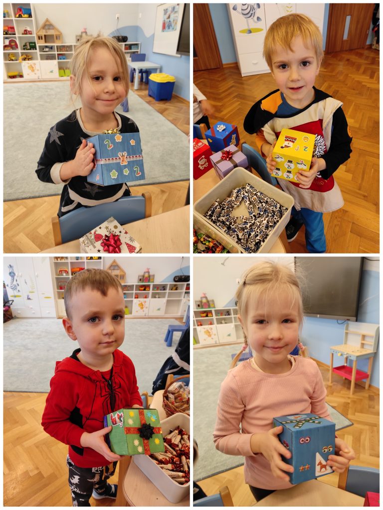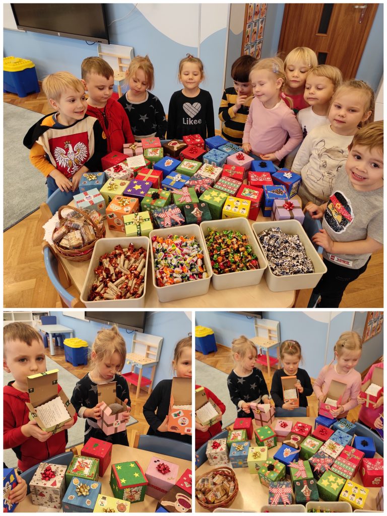 Grupa niebieska wie, że nie chodzi o to, aby tylko brać, ale również dzielić się z innymi. Dzieci wspólnie z rodzicami podczas warsztatów pięknie ozdobiły pudełka, natomiast z wychowawcą uzupełniły pudełeczka słodkościami i życzeniami. Wszystkie pudełka powędrują do Podopiecznych Hospicjum pw. Św. Ojca Pio w Pucku 😉