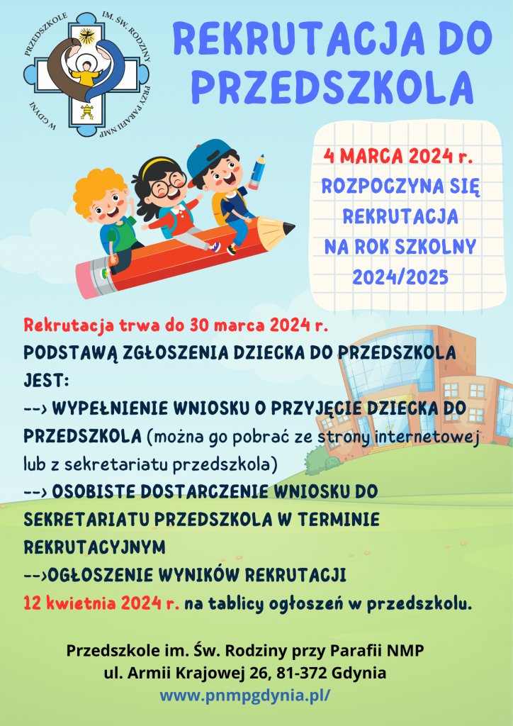 AKTUALNOŚCI, GRUPA CZERWONA, GRUPA LAWENDOWA, GRUPA NIEBIESKA, GRUPA PASTELOWA, GRUPA POMARAŃCZOWA, GRUPA TURKUSOWA, GRUPA WANILIOWA, GRUPA ZIELONA REKRUTACJA DO PRZEDSZKOLA 07/02/2024 /
