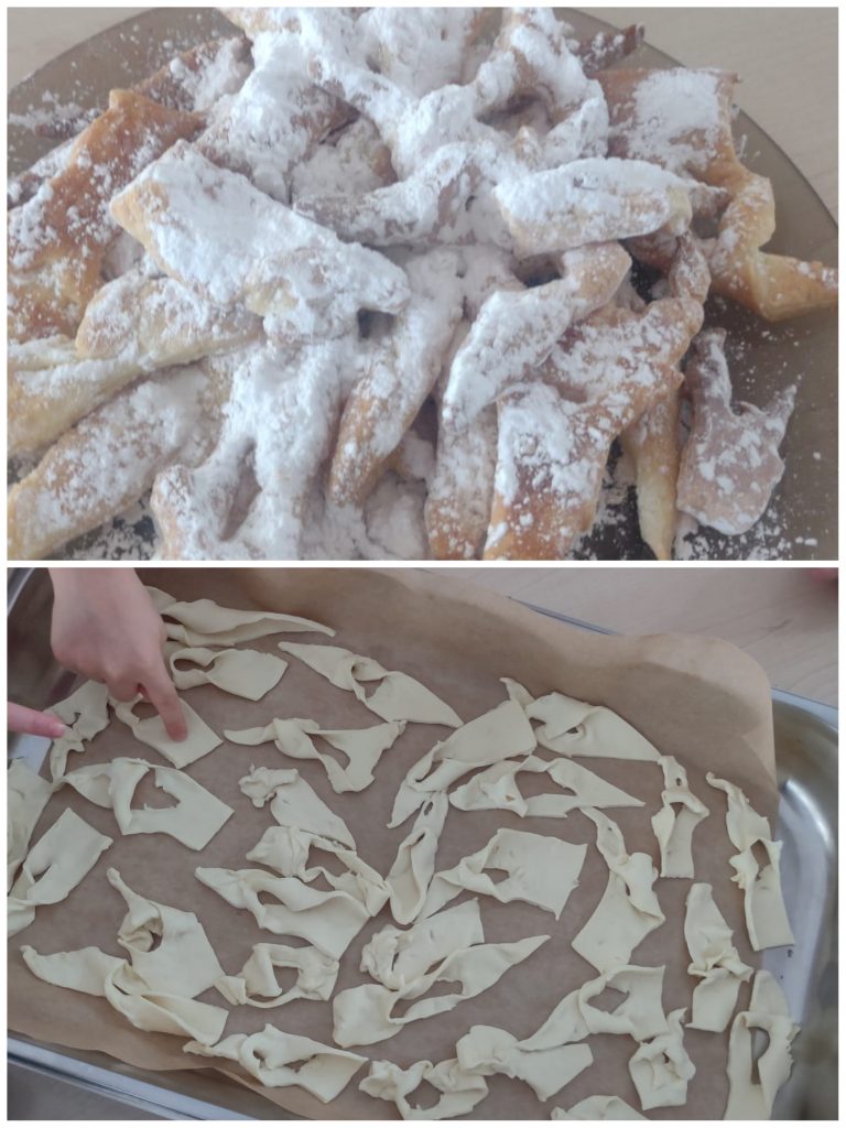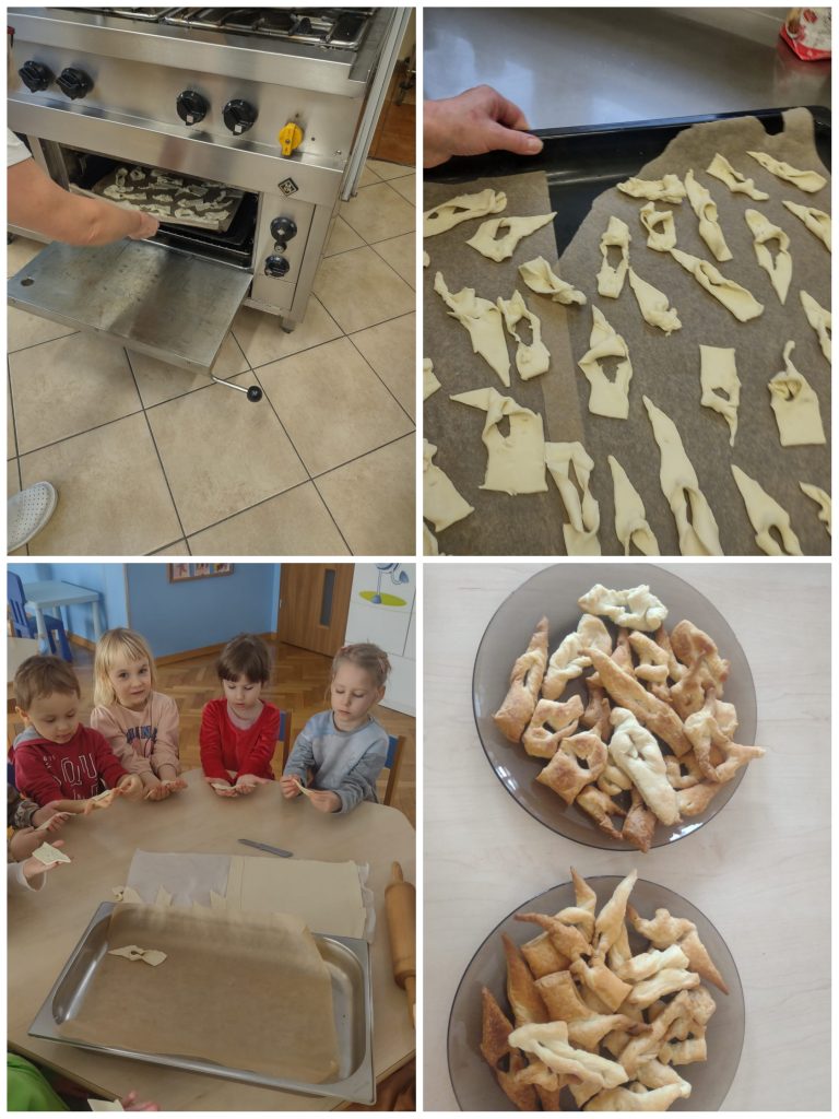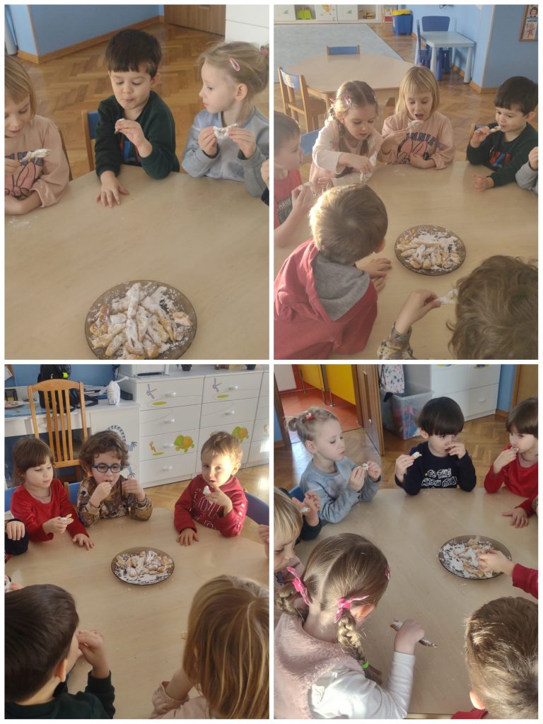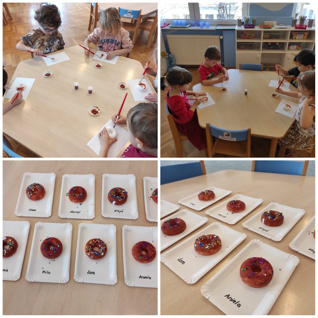 Karnawał dobiega końca, powoli zaczynamy szykować się do rozważań Wielkiego Postu. Ale zanim to nastąpi czekał nas najsłodszy dzień w roku – TŁUSTY CZWARTEK. Dzieci z samego rana zamienili się w cukierników i upiekli faworki. Degustacja to obowiązkowy punkt w tak ważnym dniu 🙂 Po obiedzie, każdy z nas wykonał swojego pamiątkowego donuta z posypką. Mimo, że wyglądały apetycznie nie były do zjedzenia 😉