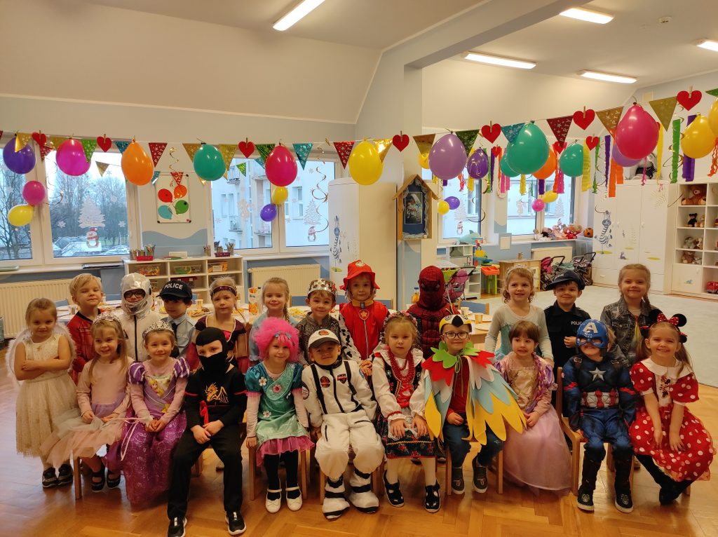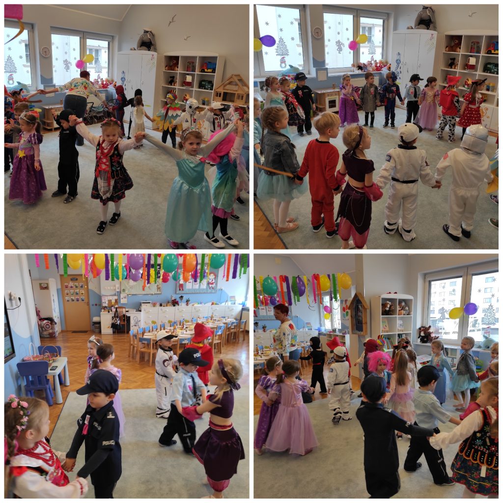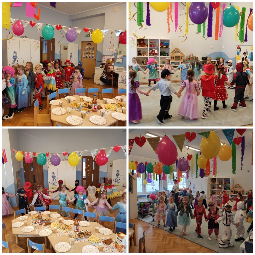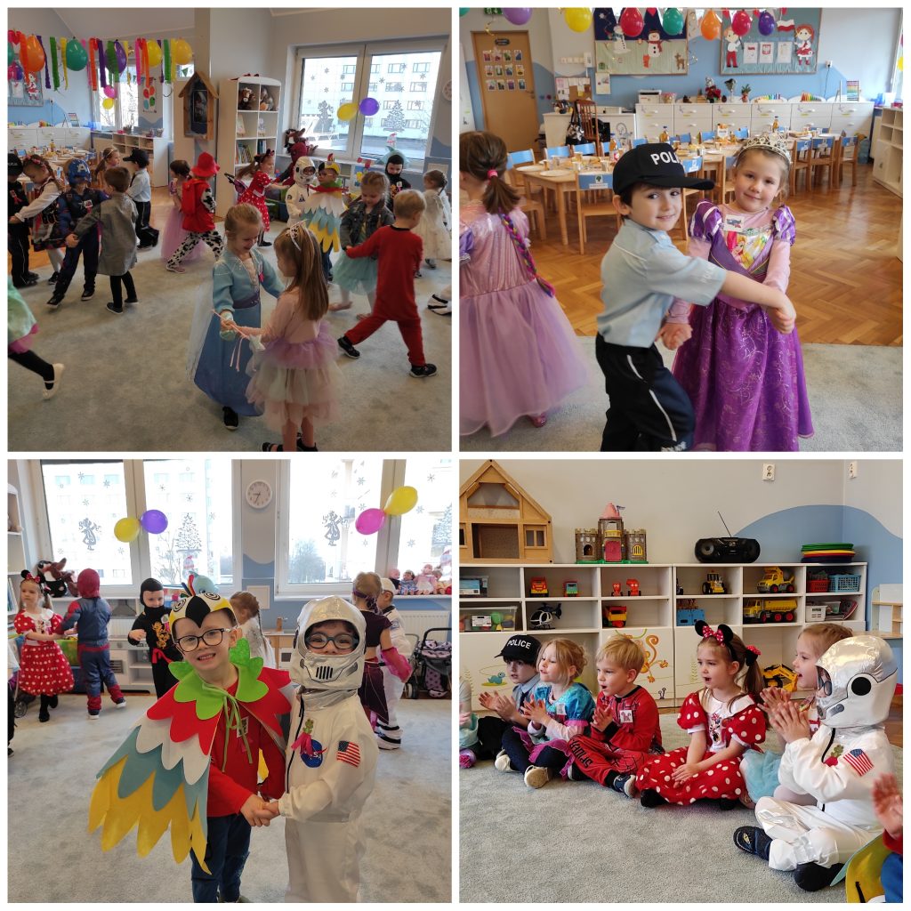 To było niesamowite zakończenie karnawału. Jak na prawdziwy bal przystało nasza impreza rozpoczęła się od zatańczenia poloneza. Dzieci znakomicie się w tym odnalazły. Nie zabrakło też dziecięcych hitów. Były quizy, tańce, zgadywanki, karnawałowe memory oraz pyszny poczęstunek A na zakończenie balu zabawy z nagrodami ;).