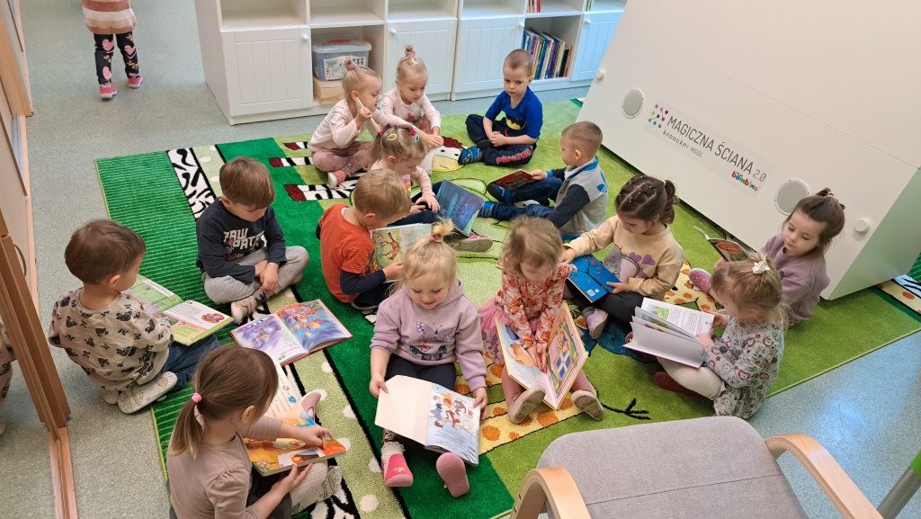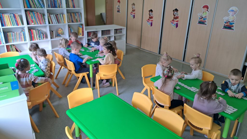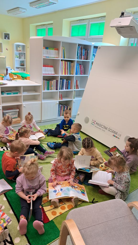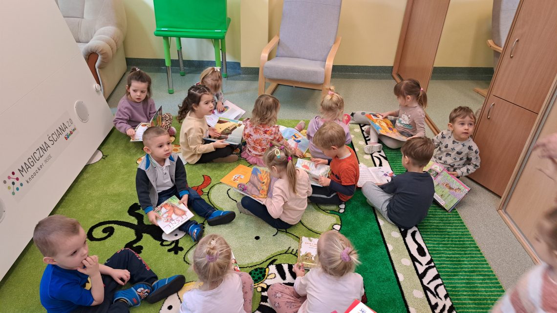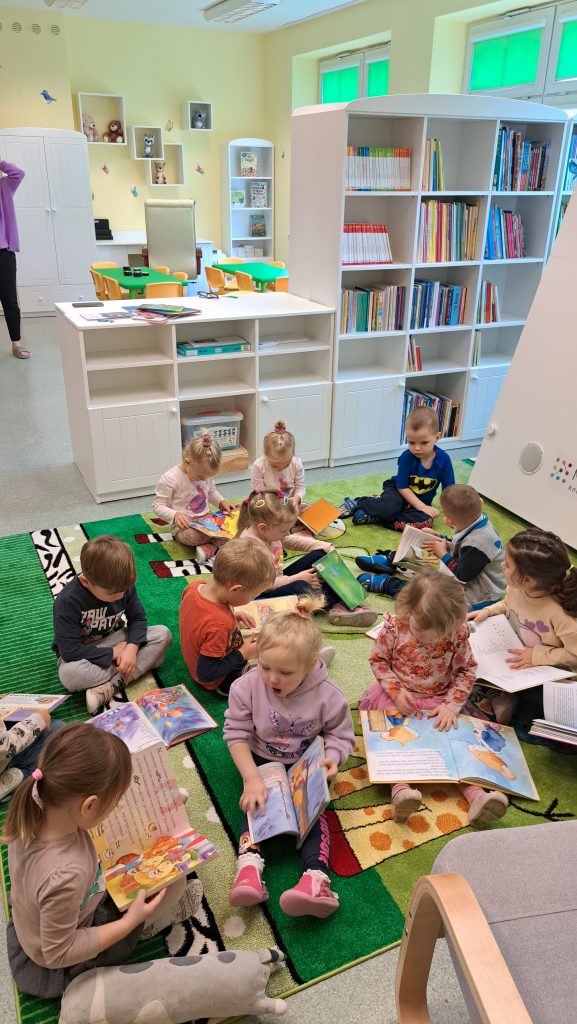 W ramach realizacji Projektu czytelniczego wybraliśmy się do naszej przedszkolnej biblioteki. Dowiedzieliśmy się, jakie są rodzaje książek, jak książki wypożyczać, oglądaliśmy albumy i encyklopedie. Zobaczyliśmy, jak piękne są ilustracje w książkach dla dzieci. Na koniec przeczytaliśmy fragment ,,Plastusiowego pamiętnika”