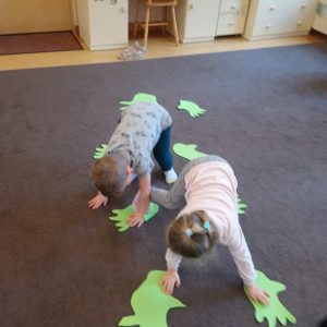 Dzień Dinozaura w grupie waniliowej to świetna okazja do zabaw ruchowych po śladach dinozaurów.