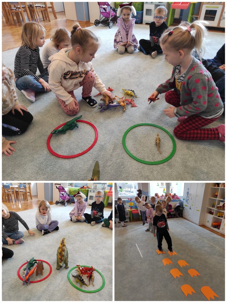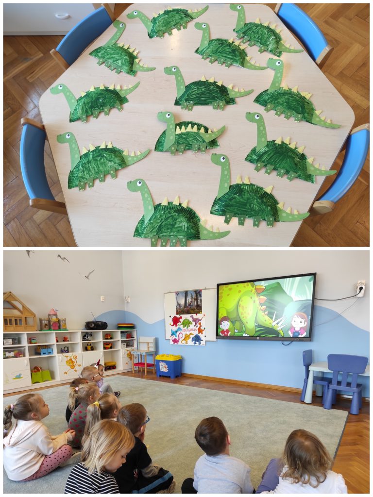 Grupa niebieska w tygodniu o dinozaurach udowodniła, że chętnie zajmie się dinozaurem. Mieliśmy okazję odkryć nazwy dinozaurów, podzielić je na mięsożerne i roślinożerne. Była dinozaurowa gimnastyka oraz matematyka. Nie zabrakło zajęć plastycznych. Podczas popołudniowego odpoczynku dzieci miały okazję zobaczyć film edukacyjny nt. dinozaurów oraz wzięły udział w quizie.