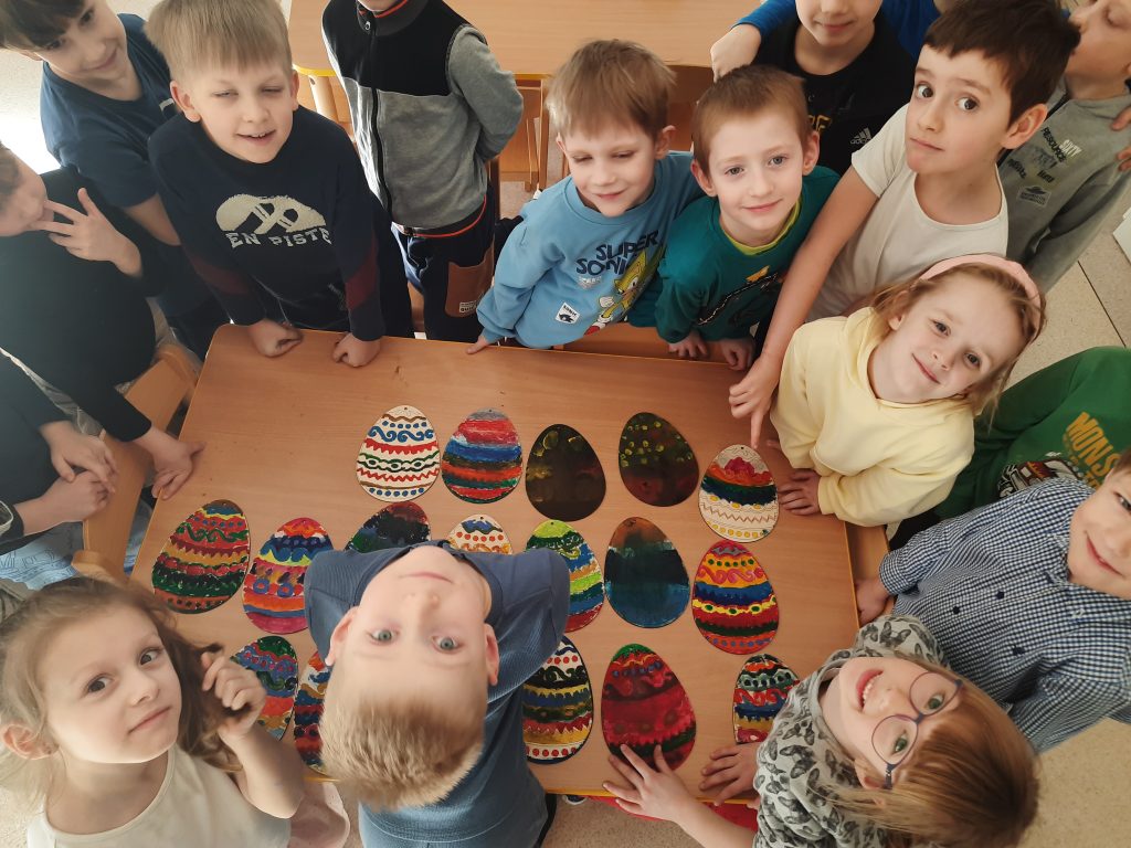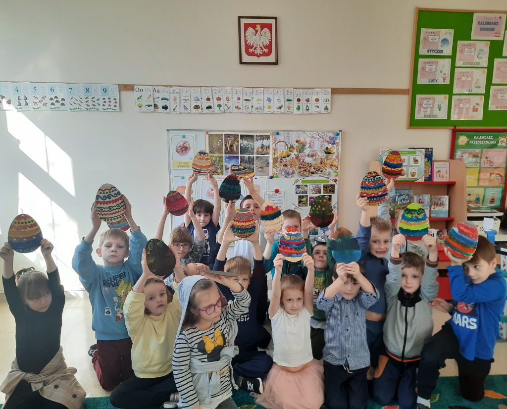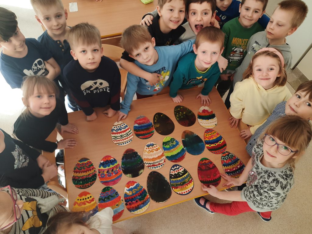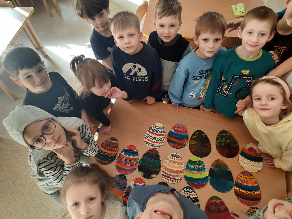 AKTUALNOŚCI, GRUPA CZERWONA Pisanki wielkanocne 30/03/2024 / Dzieci z grupy czerwonej z okazji zbliżających się Świąt Wielkiej Nocy wykonały prace plastyczną „Wielkanocne pisanki”.