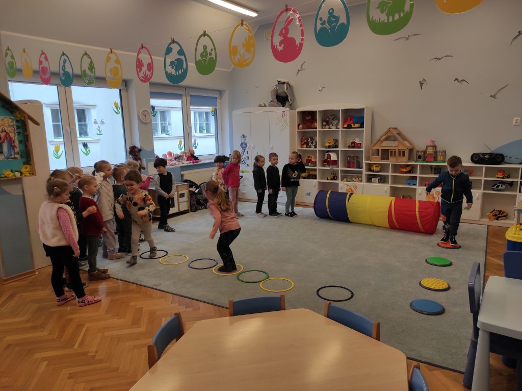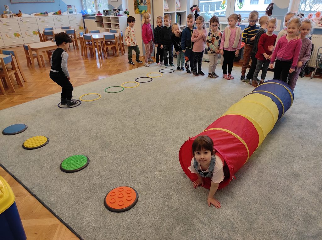 Każde dziecko dobrze wie, że to dobrze ruszać się 🙂 A w grupie niebieskiej od samego rana pokonujemy tory przeszkód 😉