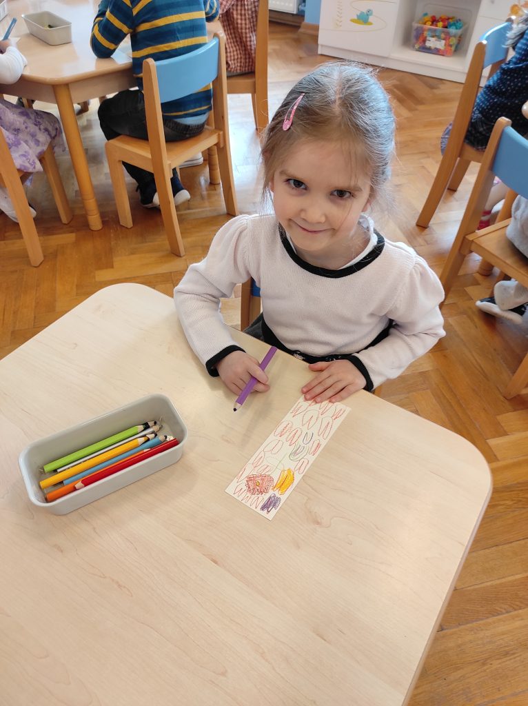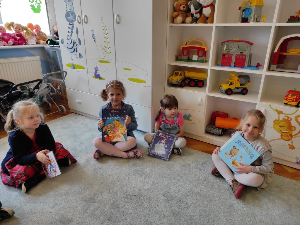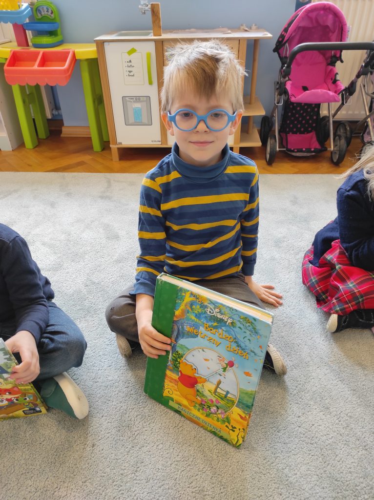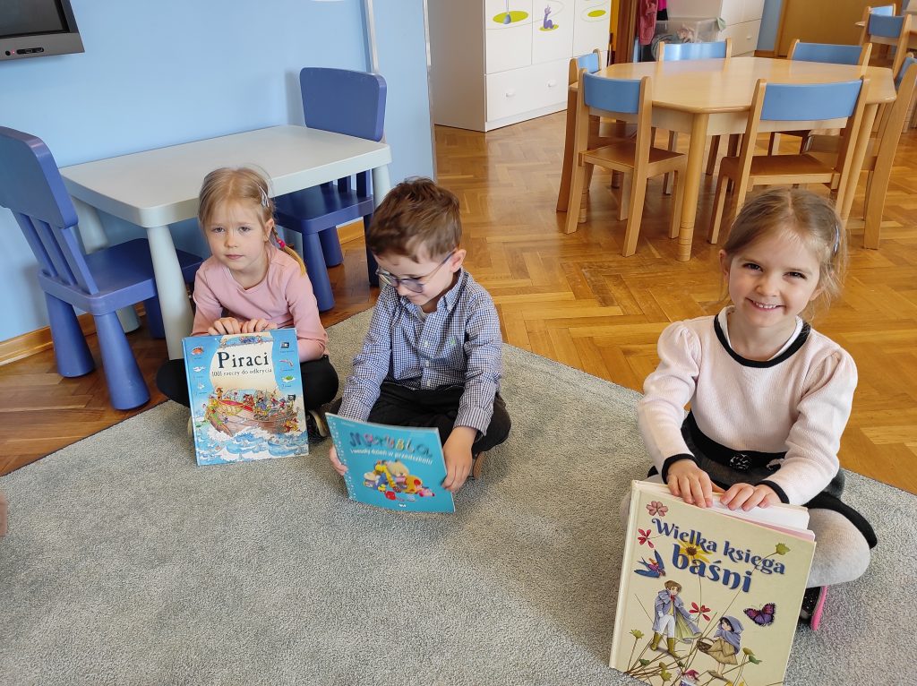 23 kwietnia obchodzimy Światowy Dzień Książki oraz Praw Autorskich. Książki mają moc przenoszenia nas do innych światów, uczą nowych rzeczy i stanowią cudowny sposób na spędzanie wolnego czasu. Uczymy się w jaki sposób należy dbać o książki, gdzie znajdziemy tytuł oraz autora książki. Każde z dzieci miało możliwość zaprezentować wybraną przez siebie książkę oraz opowiedzieć dlaczego właśnie tą wybrało. Na koniec świętowania, każde dziecko miało możliwość wykonać zakładkę do książki.