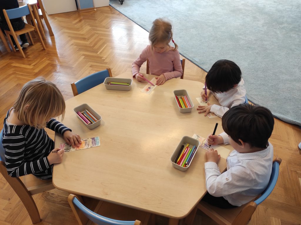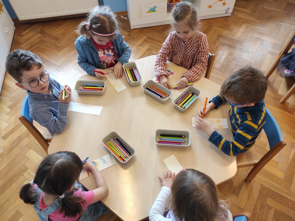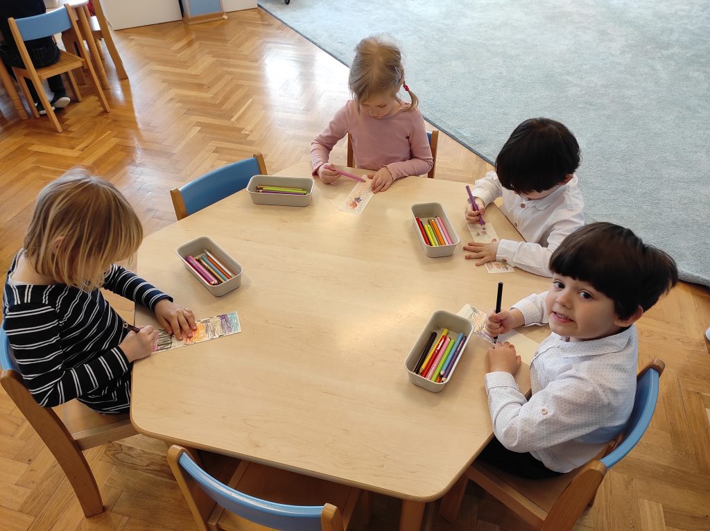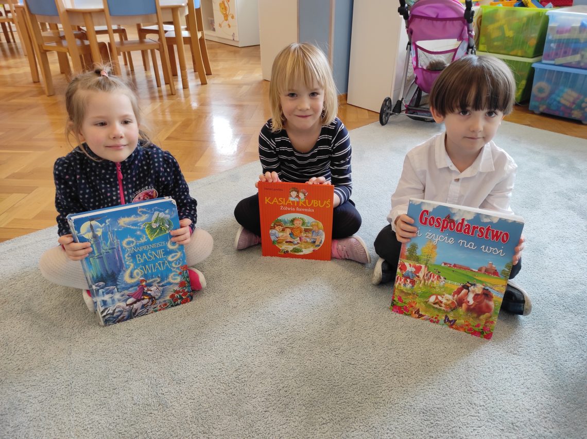 23 kwietnia obchodzimy Światowy Dzień Książki oraz Praw Autorskich. Książki mają moc przenoszenia nas do innych światów, uczą nowych rzeczy i stanowią cudowny sposób na spędzanie wolnego czasu. Uczymy się w jaki sposób należy dbać o książki, gdzie znajdziemy tytuł oraz autora książki. Każde z dzieci miało możliwość zaprezentować wybraną przez siebie książkę oraz opowiedzieć dlaczego właśnie tą wybrało. Na koniec świętowania, każde dziecko miało możliwość wykonać zakładkę do książki.