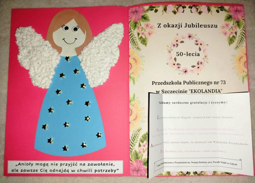 AKTUALNOŚCI, GRUPA POMARAŃCZOWA „Niespodzianka dla szczecińskiego przedszkola” 06/05/2024 / Z okazji Jubileuszu 50-lecia Przedszkola Publicznego w Szczecinie „Ekolandia” zerówka przygotowała piękną i wyjątkową kartkę urodzinową. Mamy nadzieję, że niedługo trafi do przedszkola;)