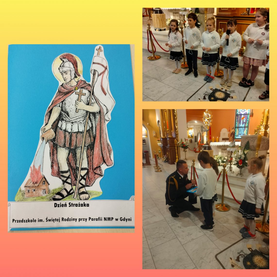 Z okazji Międzynarodowego Dnia Strażaka dzieci  z grupy Pomarańczowej wraz z wychowawcami udały się do Bazyliki pw. NMP Królowej Polski by w piękny sposób złożyć życzenia Strażakom i podziękować im za trud włożony w ich niebezpieczną pracę.