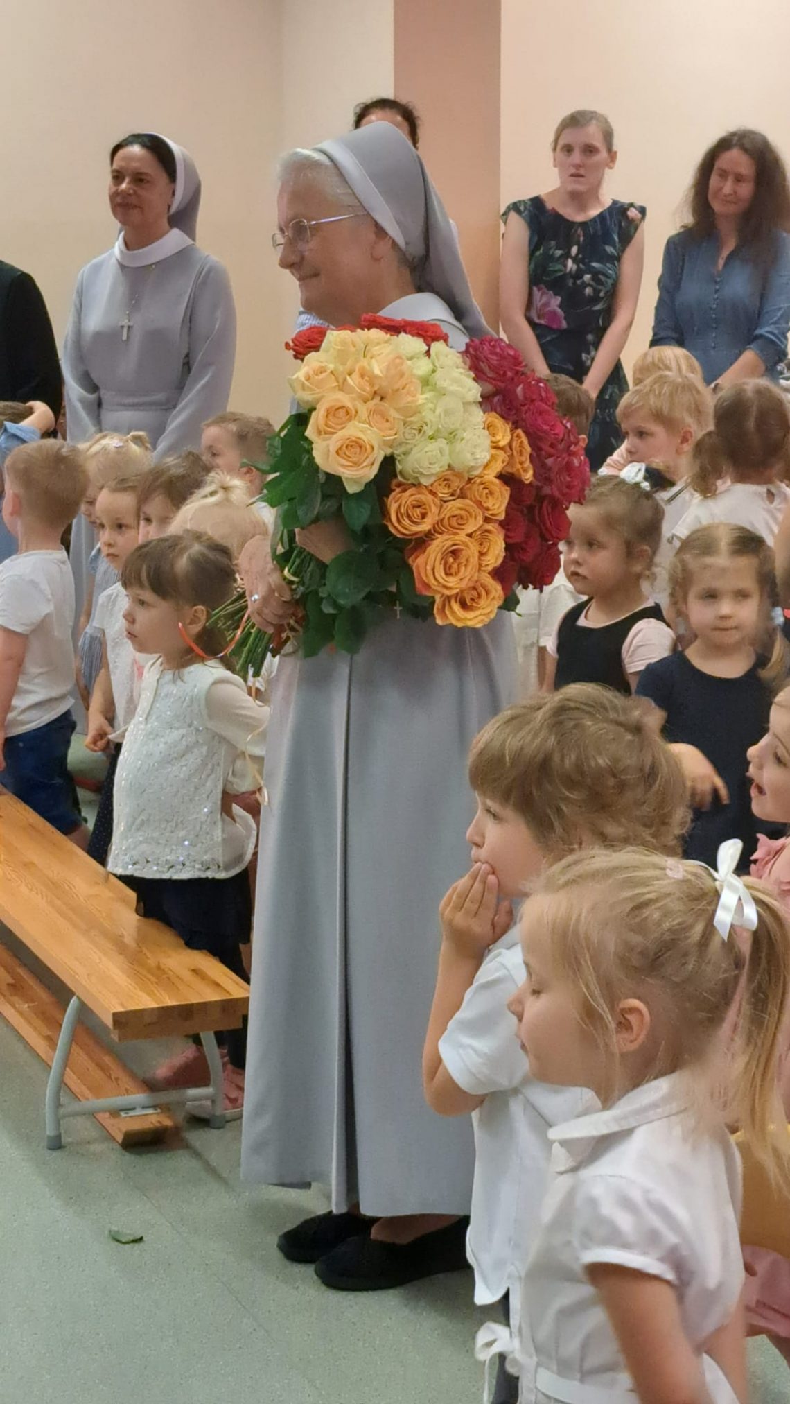 Nasza s. Dyrektor 3 czerwca obchodziła 60-te urodziny. Była to okazja do wspólnego świętowania dla całego przedszkola. Na początek dzieci złożyły siostrze Marii życzenia, a następnie zaprosiły na bajkę pt. „Słonik Tupi”. Po bajce dzieci wręczyły Siostrze bukiet 60 róż i zaśpiewały sto lat. Była to również okazja do podziękowania s. Dyrektor za jej pracę, poświęcenie, zaangażowanie w rozwój przedszkola oraz każde dobre słowo i wsparcie. Zapraszamy do obejrzenia krótkiej relacji z tego wydarzenia.