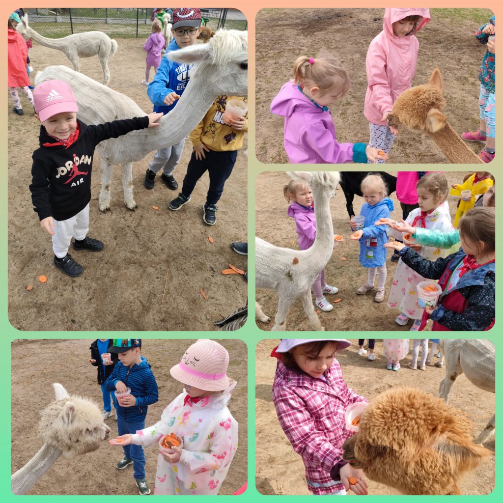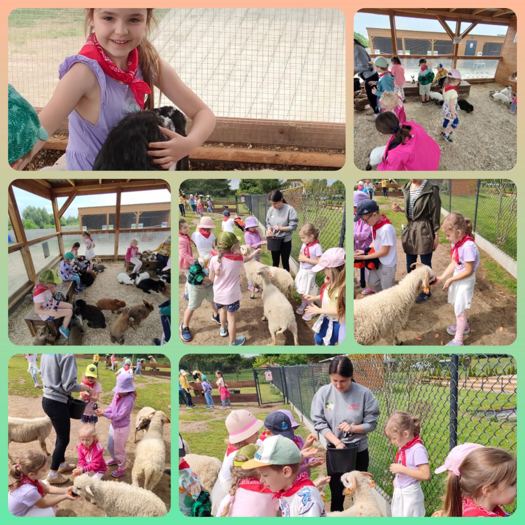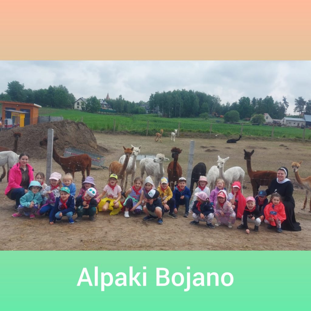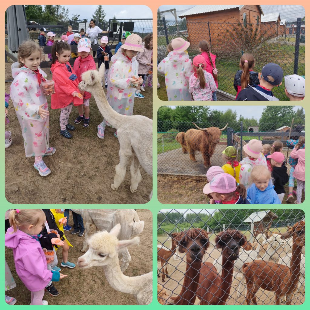 W ramach świętowania dnia dziecka grupa lawendowa wybrała się na wycieczkę do Bojana. Podczas wycieczki mogliśmy poznać różne zwierzątka: Alpaki, kózki, barany, króliki, pawie oraz kury i papugi. Mieliśmy również okazję je pogłaskać i nakarmić. Po zwiedzaniu był czas na ognisko z pysznymi kiełbaskami, a także lody i wata cukrowa czyli to co dzieci lubią najbardziej. Na koniec wycieczki każdy przedszkolak mógł sobie wybrać pamiątkę. Był to wspaniały dzień pełen wrażeń.