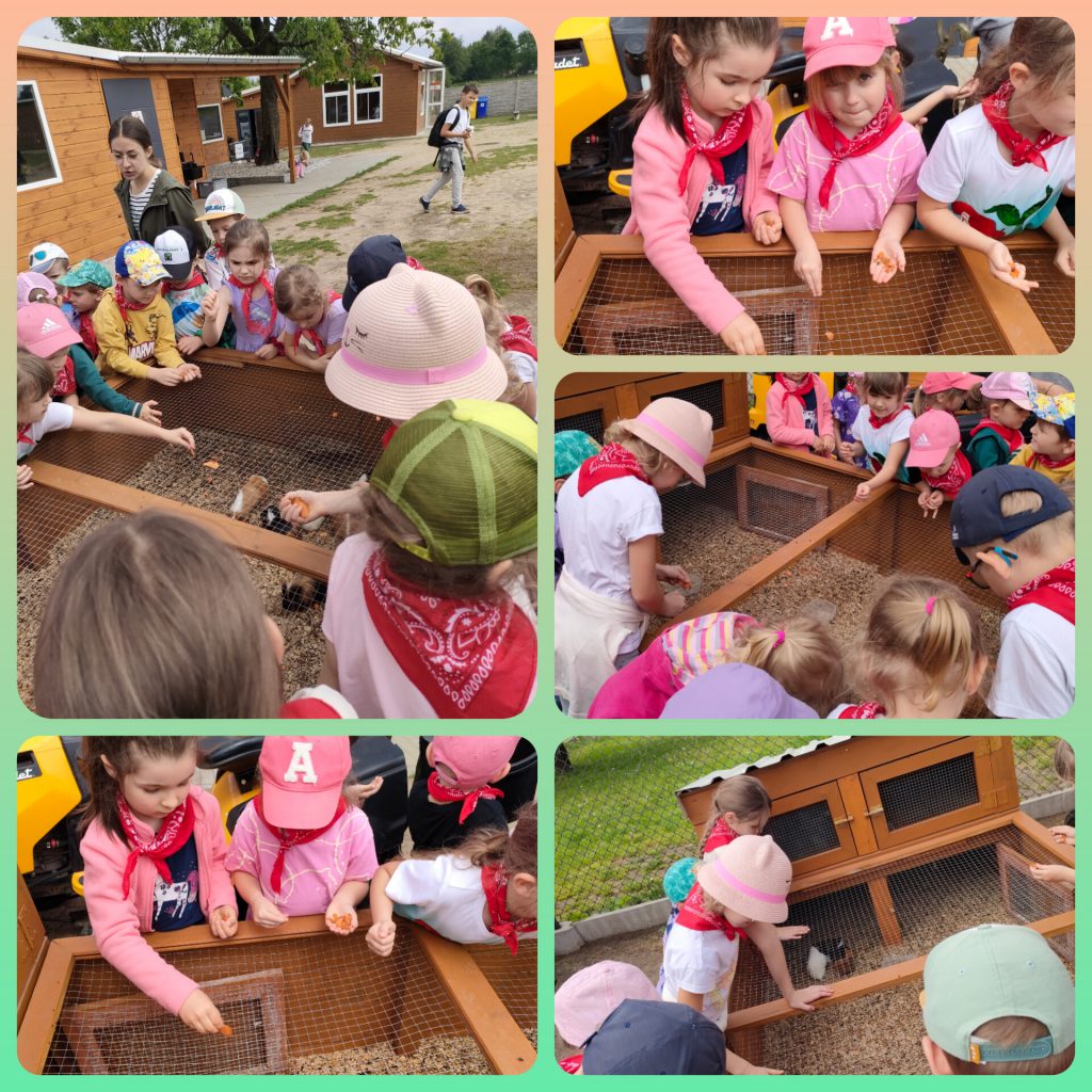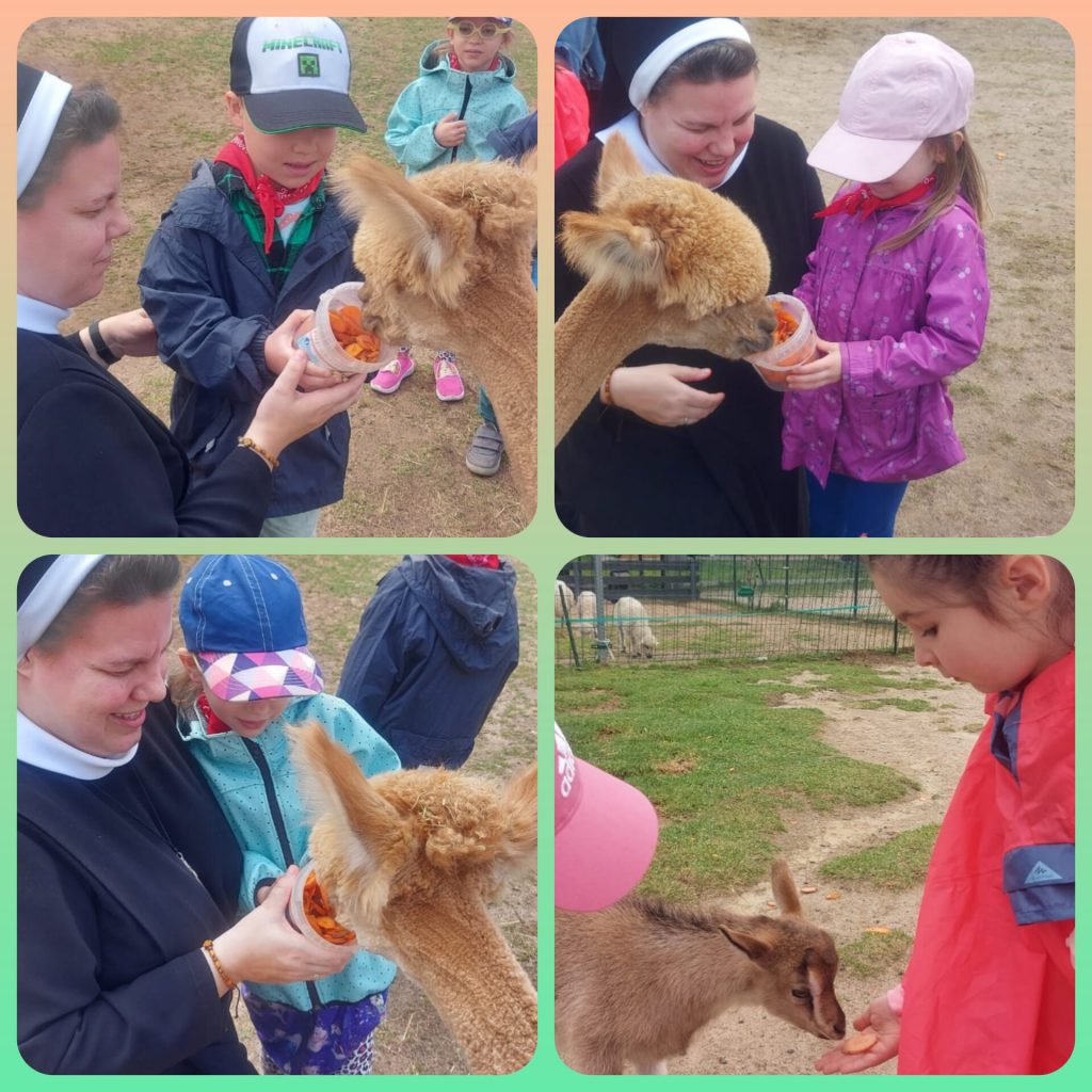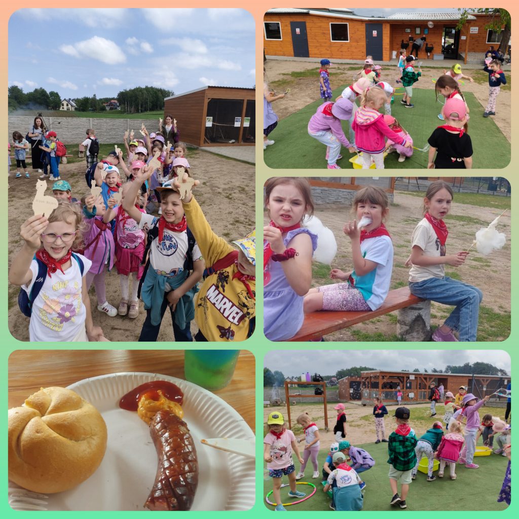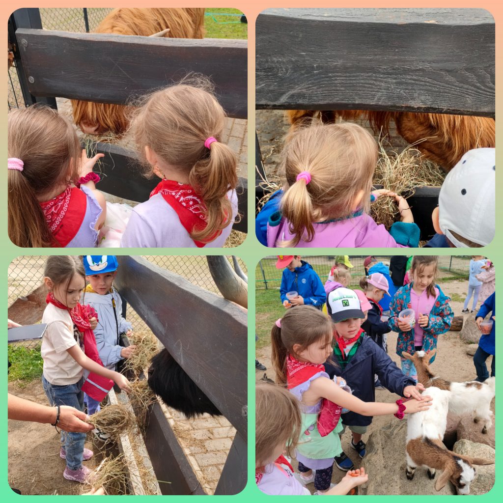 W ramach świętowania dnia dziecka grupa lawendowa wybrała się na wycieczkę do Bojana. Podczas wycieczki mogliśmy poznać różne zwierzątka: Alpaki, kózki, barany, króliki, pawie oraz kury i papugi. Mieliśmy również okazję je pogłaskać i nakarmić. Po zwiedzaniu był czas na ognisko z pysznymi kiełbaskami, a także lody i wata cukrowa czyli to co dzieci lubią najbardziej. Na koniec wycieczki każdy przedszkolak mógł sobie wybrać pamiątkę. Był to wspaniały dzień pełen wrażeń.
