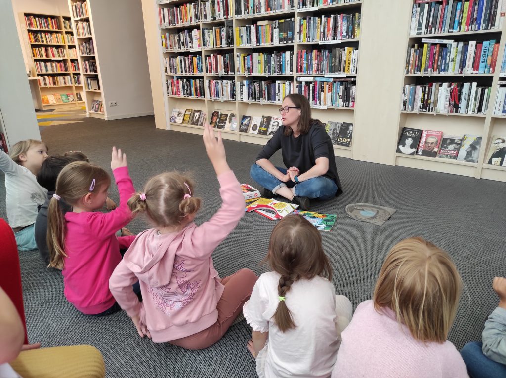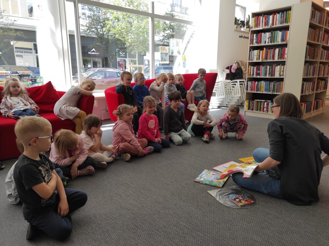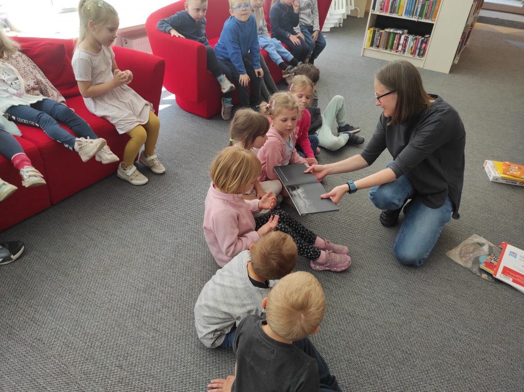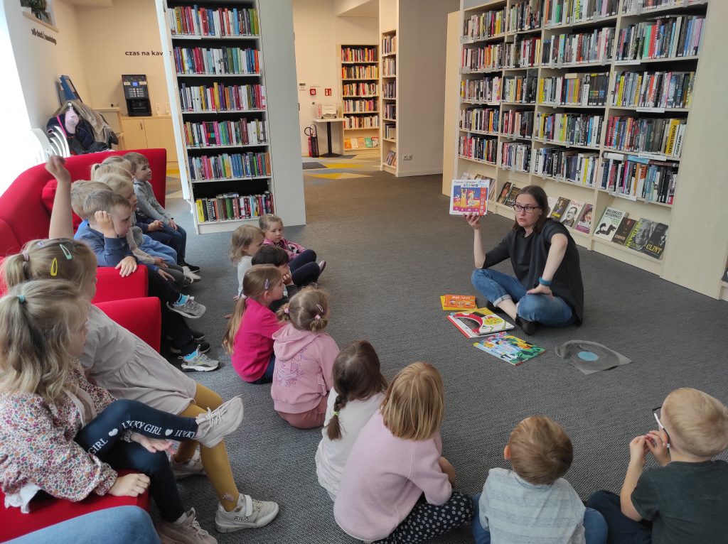 Grupa niebieska wybrała się do Gdyńskiej Biblioteki Śródmieście na zajęcia czytelnicze. Było to dla nas niesamowite doświadczenie. Pani bibliotekarka obaliła mit, że w bibliotece na pewno jest nudno. Od wejścia panowała wspaniała atmosfera, a książki, które mieliśmy okazję wspólnie zobaczyć i przeczytać były dla nas niecodzienne. Wiemy, że w bibliotece dbamy nie tylko o książki, ale również o ciszę, aby nie przeszkadzać inny. Podczas spotkania dowiedzieliśmy się, że w bibliotece można również grać w gry planszowe oraz słuchać muzyki. Wszystkie dzieci wyszły z biblioteki bardzo zadowolone.