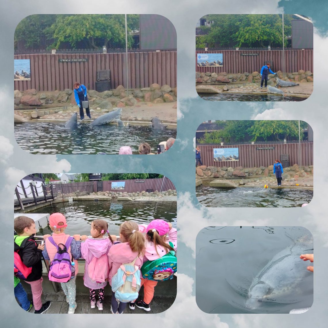 Dzisiaj nasza grupa wybrała się pociągiem  na Hel. Pomimo deszczowej pogody  pełni entuzjazmu i dobrego humoru z plecaczkami  wyruszyliśmy po przygodę. Odwiedziliśmy fokarium i mieszczące się  w nim muzeum. Foki  okazały się bardzo mądrymi stworzeniami, które wykonują różne sztuczki. A w nagrodę za wykonane zadanie otrzymują one do zjedzenia pyszne i pożywne rybki. Zatrzymaliśmy się również w jednej z helskich restauracji na frytki  i ciepłą herbatę z cytryną. Wycieczka  bardzo nam się podobała i pozostanie w naszych wspomnieniach na długo !!!