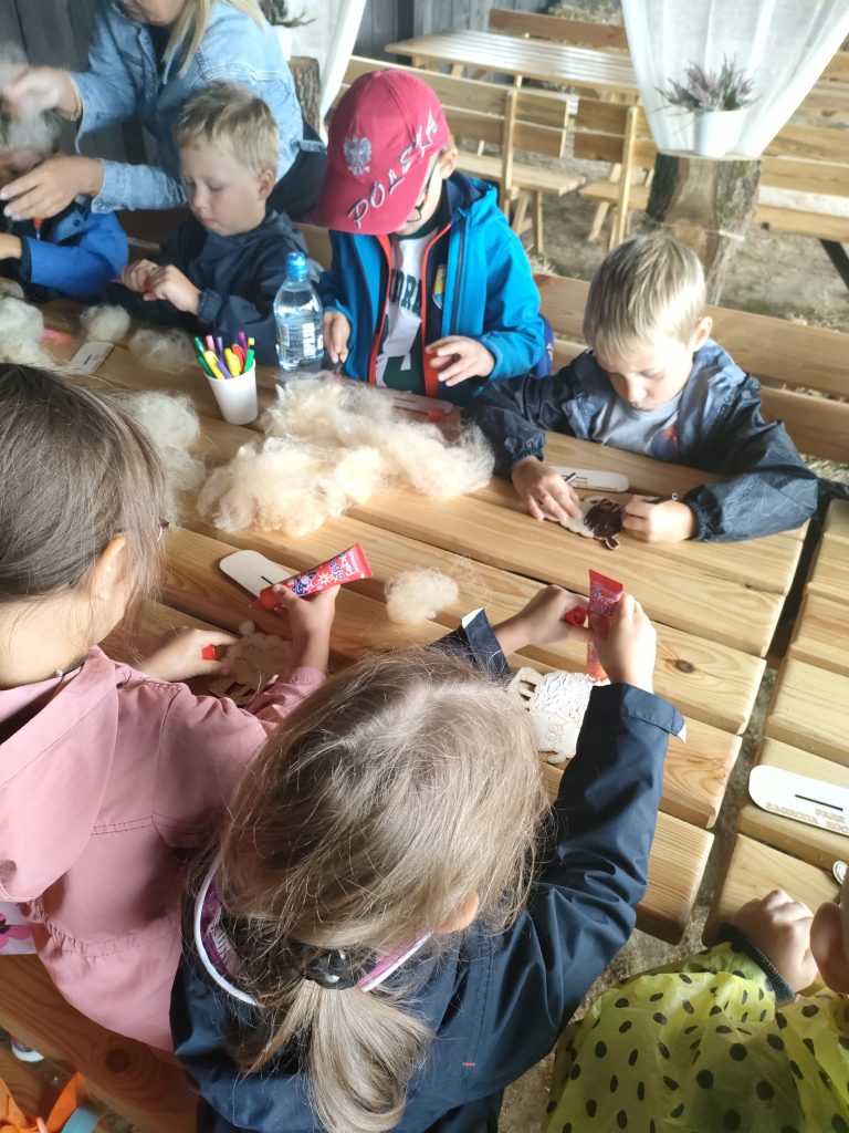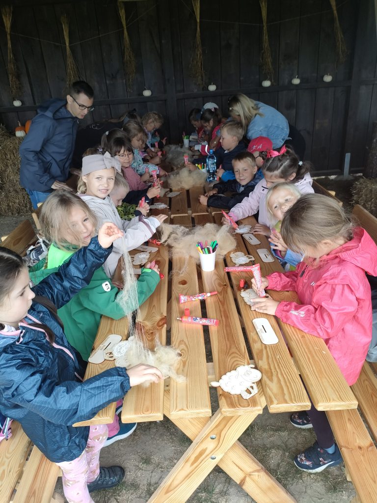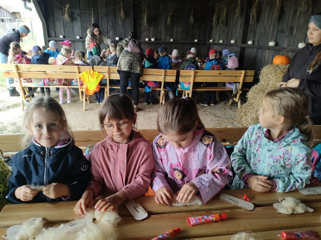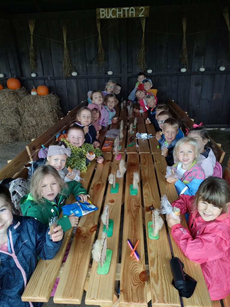 12.09 wybraliśmy się na wycieczkę do Zagrody Kociewskiej. Lecz pogoda już od rana, chmurami nas powitała. Mimo wszystko z wielką wiarą ruszyliśmy wielką parą. A na miejscu już pod daszkiem przyszedł czas na wyobraźnię. Rozpoczęły się warsztaty – dla małego i dużego. Każdy projekt przygotował oraz własną owcę wykonał. Mimo dalszej zimnej aury postanowiliśmy, że w golfa zagramy. Na plac zabaw też przyszedł czas i na sesję zdjęciową zrobiona ,, raz- dwa”. A na koniec pyszny obiad na regenerację sił. Każdy zajadał go w mig. Po tak wielkiej przygodzie wróciliśmy do Przedszkola. Trochę zmarznięci i zmęczeni, ale szczęśliwi, że każdy z nas tej przygodzie podołał.