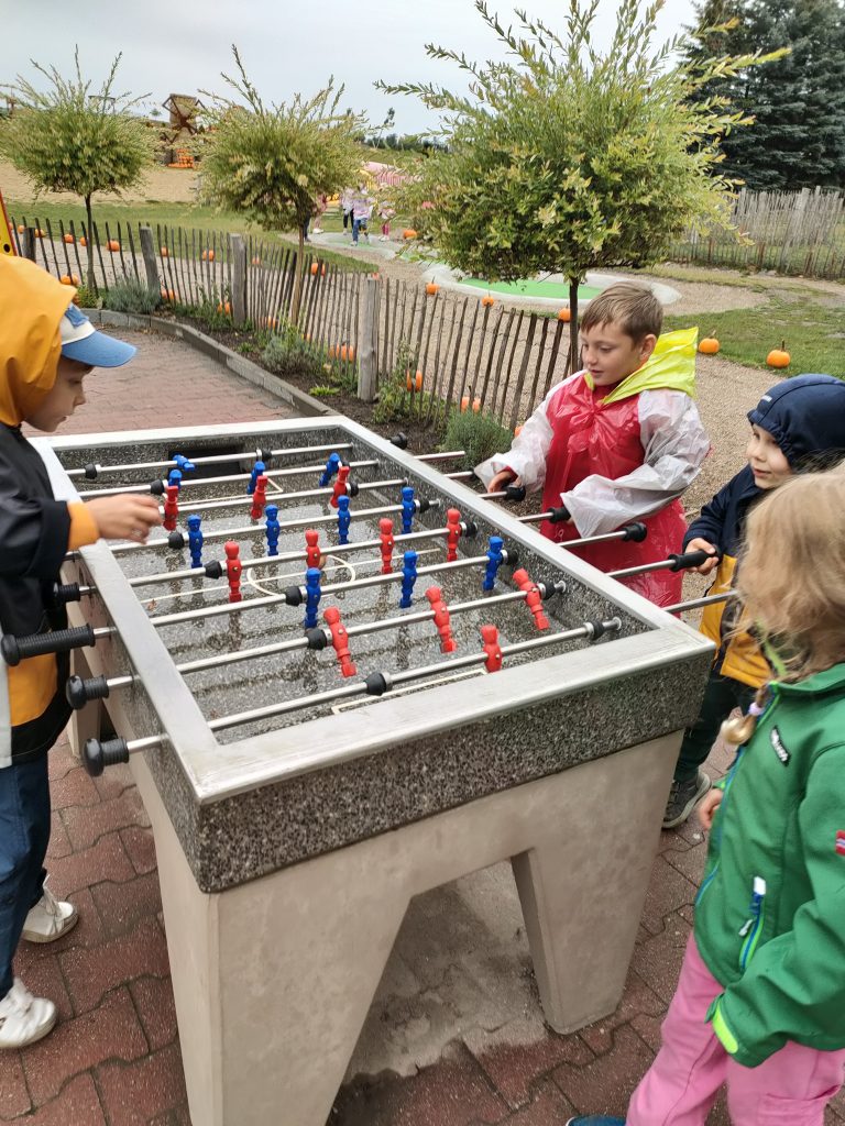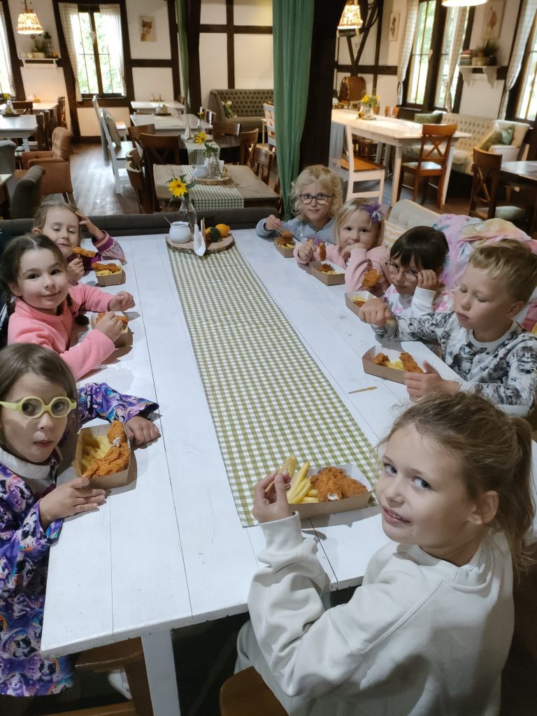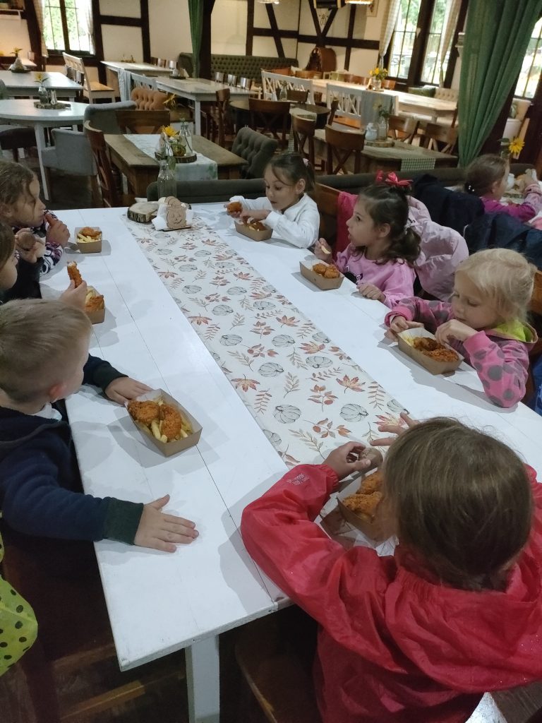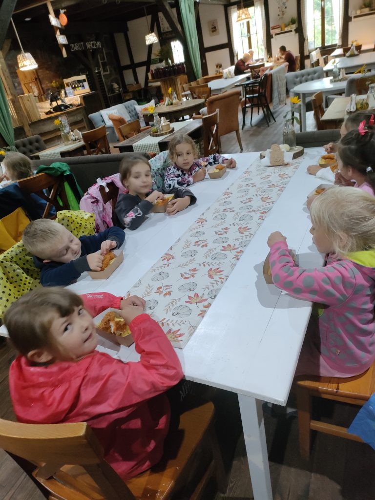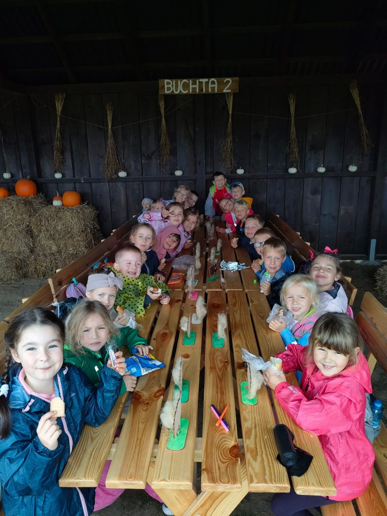 12.09 wybraliśmy się na wycieczkę do Zagrody Kociewskiej. Lecz pogoda już od rana, chmurami nas powitała. Mimo wszystko z wielką wiarą ruszyliśmy wielką parą. A na miejscu już pod daszkiem przyszedł czas na wyobraźnię. Rozpoczęły się warsztaty – dla małego i dużego. Każdy projekt przygotował oraz własną owcę wykonał. Mimo dalszej zimnej aury postanowiliśmy, że w golfa zagramy. Na plac zabaw też przyszedł czas i na sesję zdjęciową zrobiona ,, raz- dwa”. A na koniec pyszny obiad na regenerację sił. Każdy zajadał go w mig. Po tak wielkiej przygodzie wróciliśmy do Przedszkola. Trochę zmarznięci i zmęczeni, ale szczęśliwi, że każdy z nas tej przygodzie podołał.