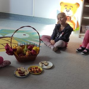 Kolejny tydzień niesie za sobą omawianie kolejnych oznak jesieni. Były dary jesieni w parku oraz lesie, a teraz czas na dary jesieni w ogrodach i sadach. Dzieci wspólnie wskazywały, nazywały oraz grupowały przyniesione…