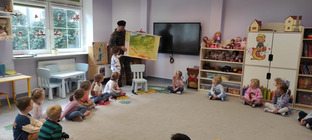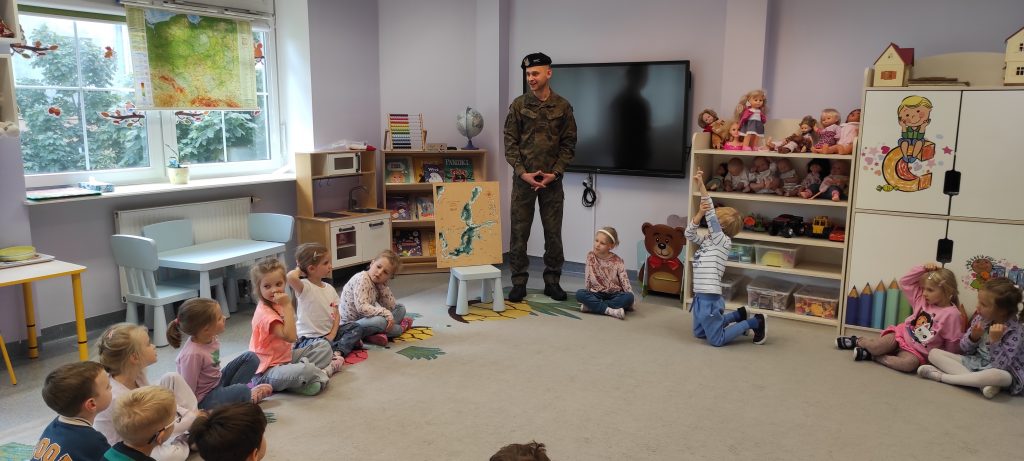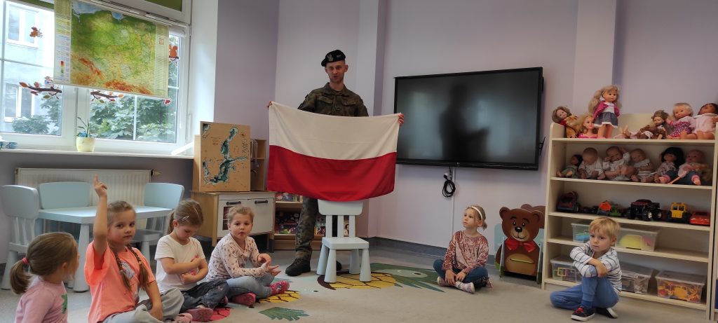 W naszej sali zagościł wyjątkowy gość – Żołnierz Marynarki Wojennej, a prywatnie Tata Jasia 🙂 Podczas spotkania dzieci poznały zawód żołnierza oraz jego obowiązki. Mieliśmy możliwość wysłuchać o tym kim jest prawdziwy patriota, jakie mamy symbole narodowe oraz co oznaczają kolory flagi naszego Państwa. To było bardzo wartościowe spotkanie dla nas wszystkich.
