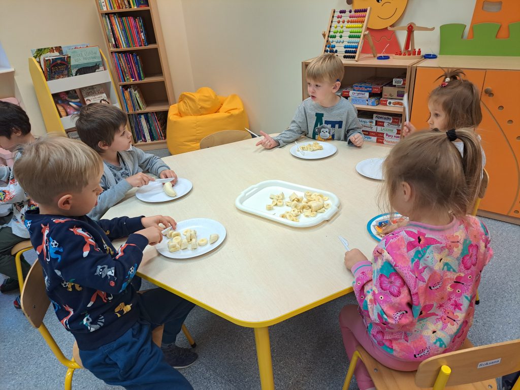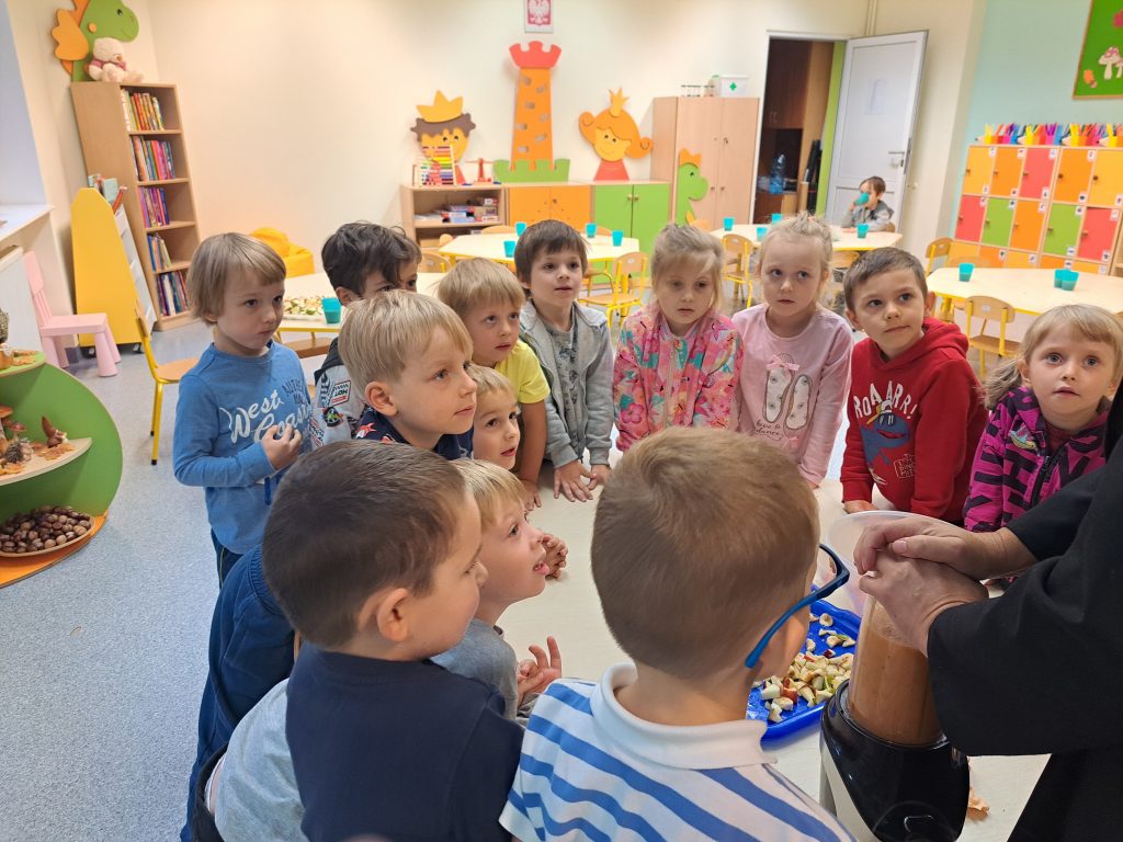 Przygotowanie koktajlu owocowego (jabłko, gruszka, banan). Degustacja koktajlu, promowanie zdrowego odżywiania.