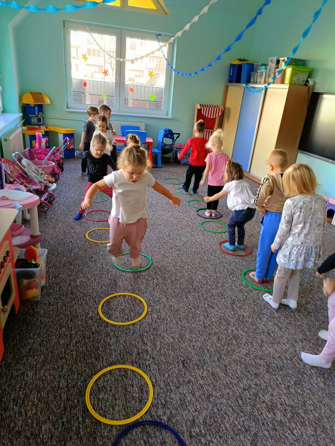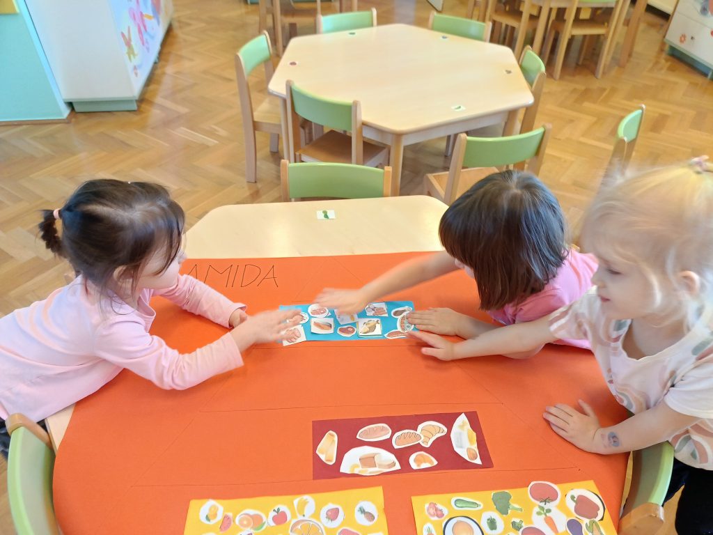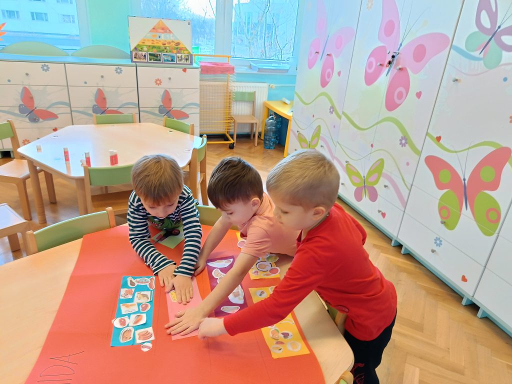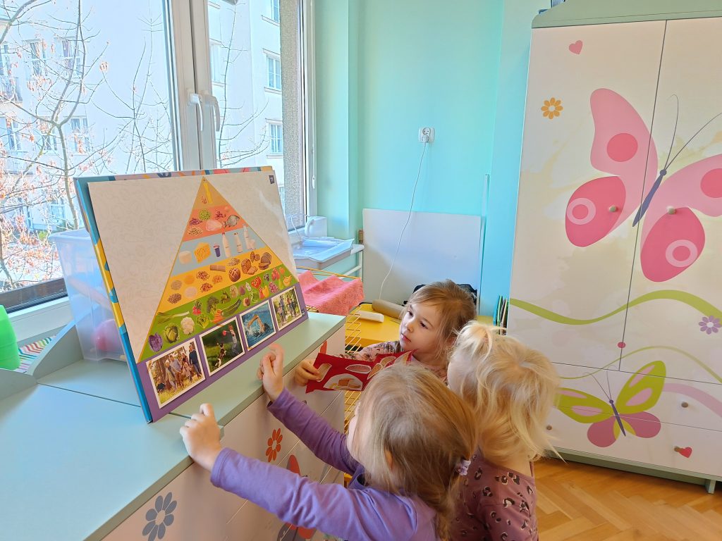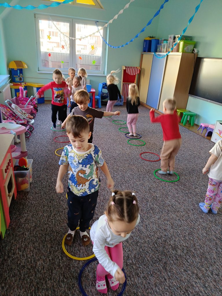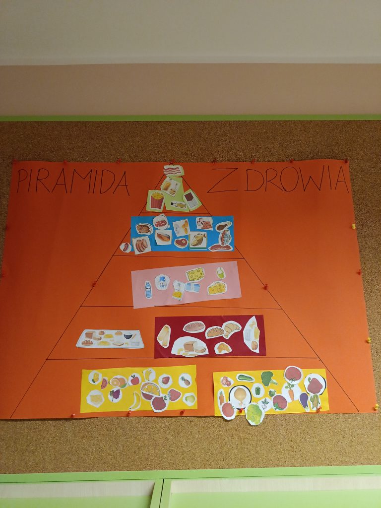 W listopadzie grupa zielona bardzo zaangażowała się w temat dbam o zdrowie – był ruch, i ćwiczenie koordynacji wzrokowo- ruchowej ze stopami, oraz ruchowej z obręczami, a w kolejnych dniach wykonaliśmy plakat piramida zdrowia. Grupa zielona  dba o zdrowie 🙂