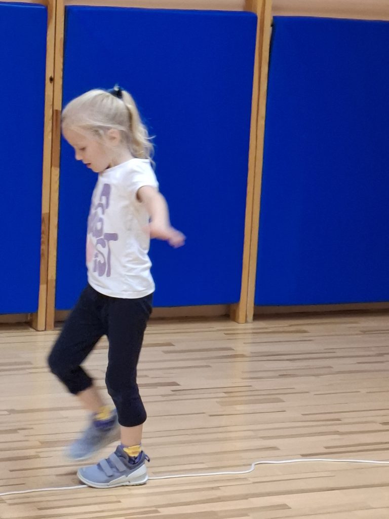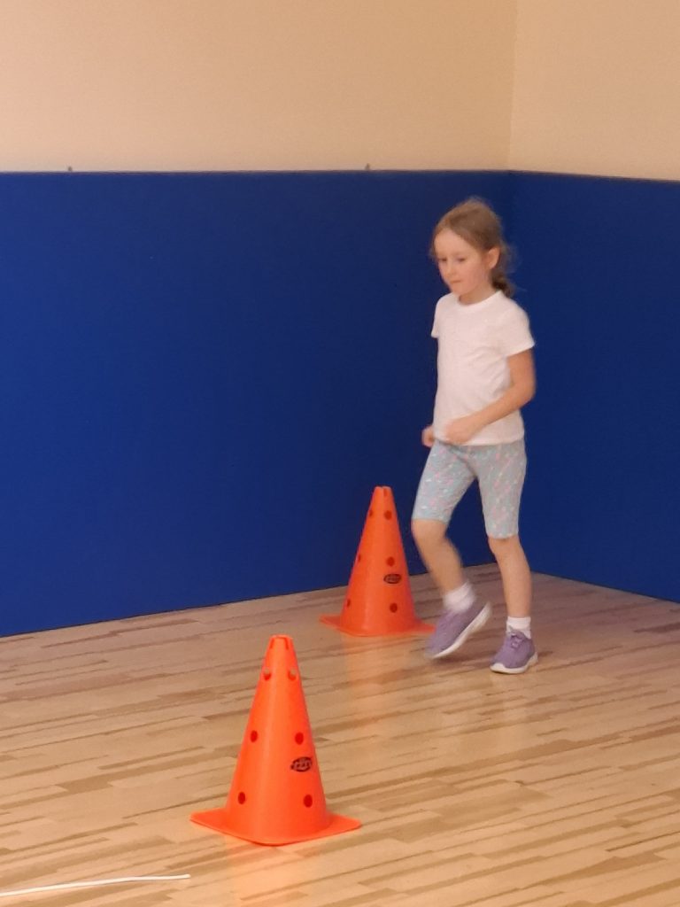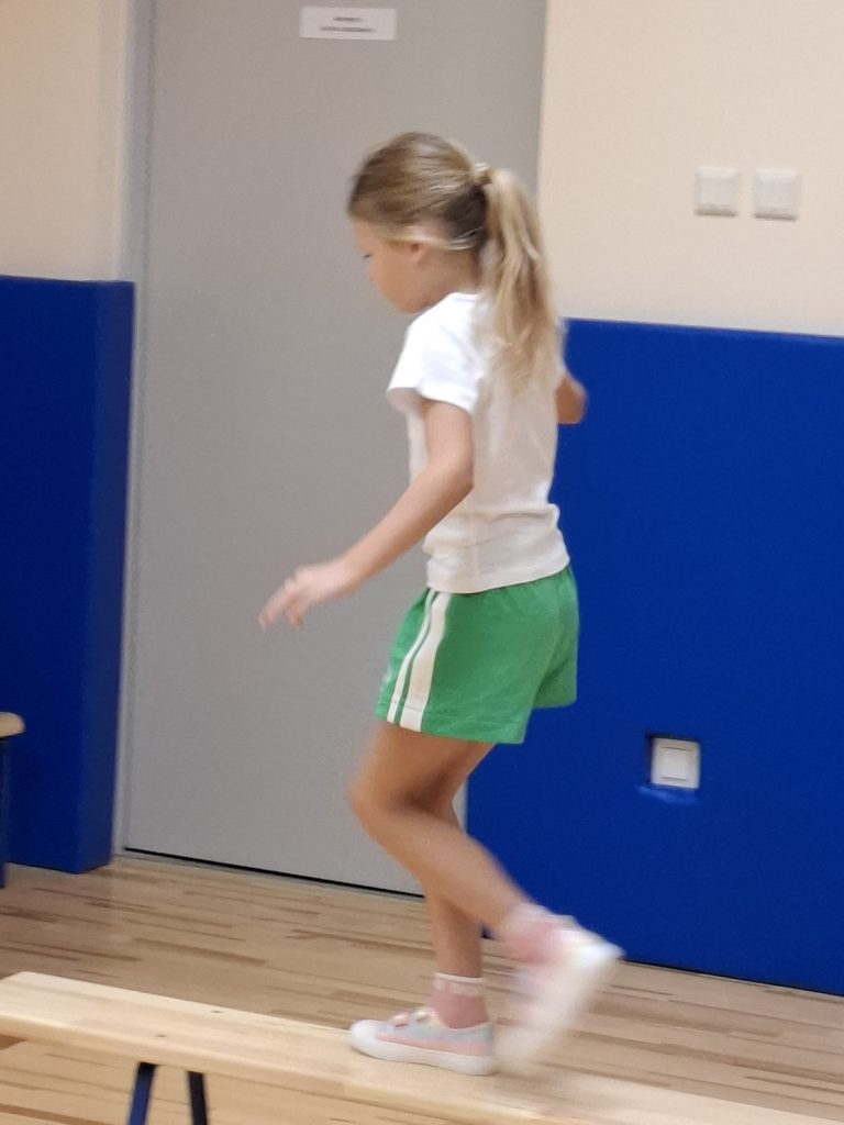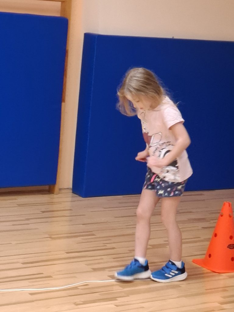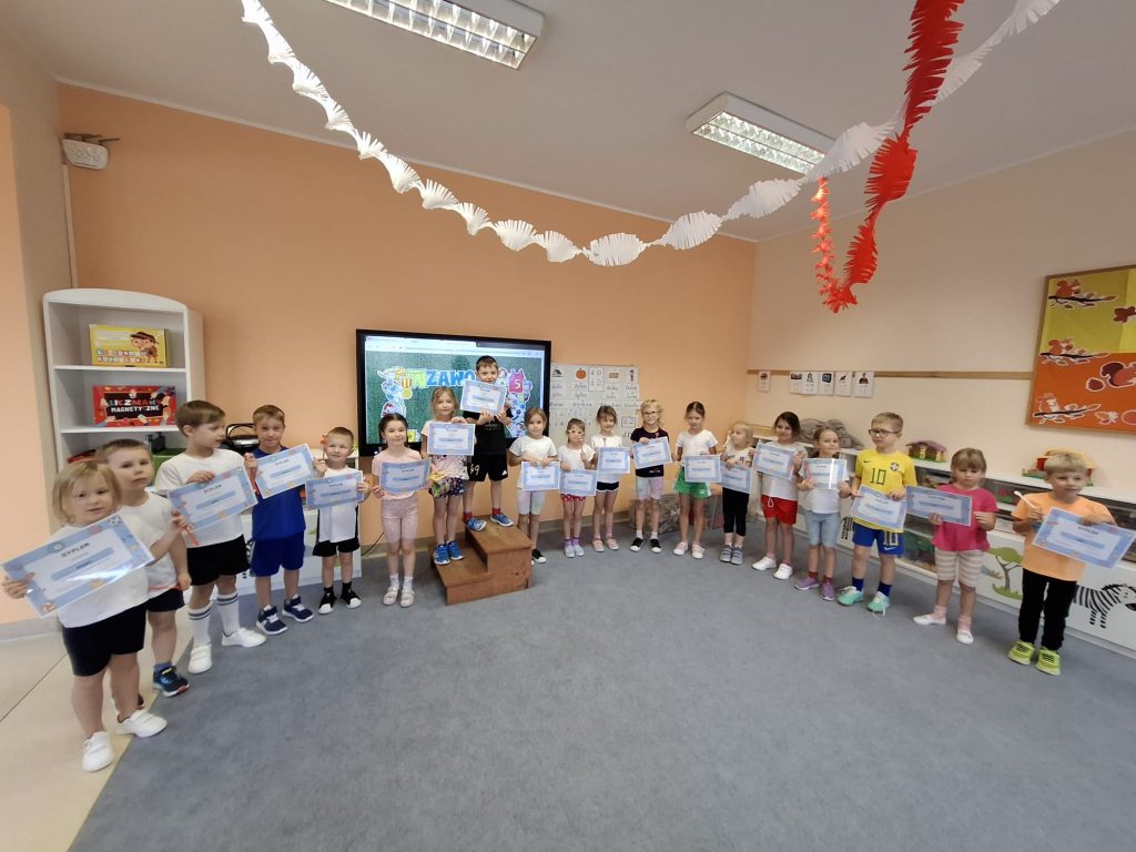 Wiemy, że sport to zdrowie dlatego z chęcią wzięliśmy udział w zawodach sportowych. Mieliśmy do pokonania 6 konkurencji: rzut do celu, łapanie piłki, skoki w przysiadzie, skoki na jednej nodze, przejście po linie i po równoważni. Wszystkie zadania wykonaliśmy wzorowo, ale o wygranej decydował również czas pokonania całego toru. Zwycięzcy zostali obdarowani nagrodami, a pozostali uczestnicy otrzymali pamiątkowe dyplomy i małe upominki.
