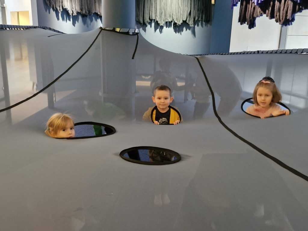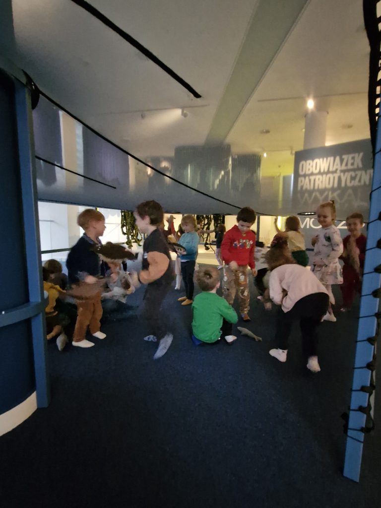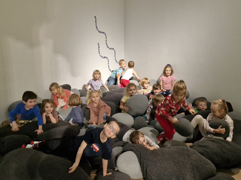 3.12 na zaproszenie Taty Diany wybraliśmy się do Muzeum Miasta Gdyni na wystawę historyczno – sensoryczną pt. „W Gdyni nie pada”. Zapoznaliśmy się z historią miasta oraz doświadczyliśmy m.in. morskich głębin, przeszliśmy się po nadbrzeżnych kamieniach a to wszystko w przygotowanej specjalnie dla dzieci sali muzealnej.