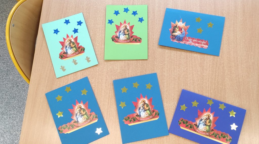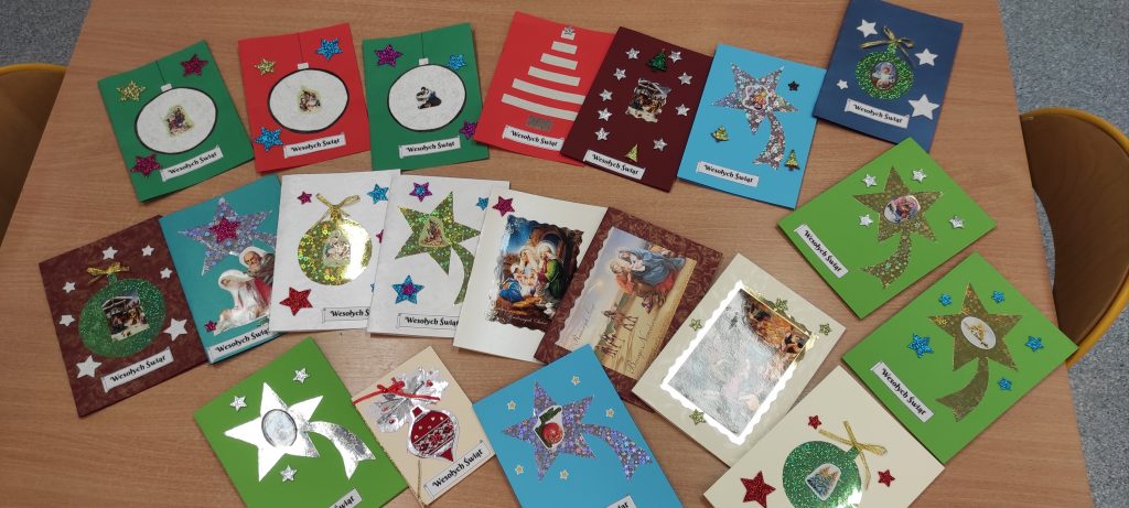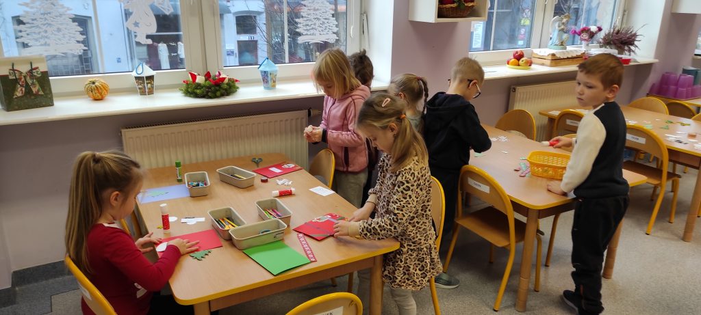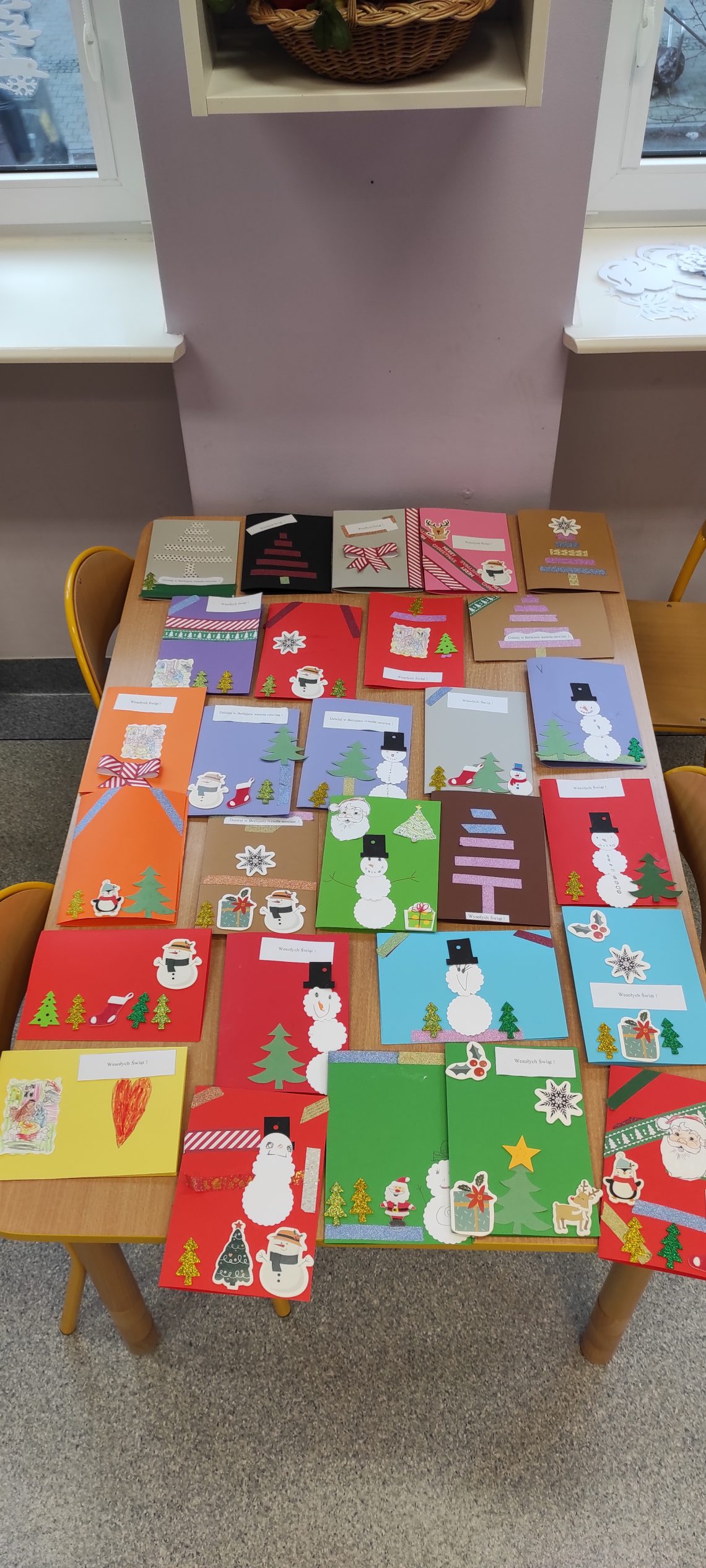 Grudzień to dla naszych przedszkolaków bardzo pracowity czas. Wspólnymi siłami dzieci przygotowały kartki Bożonarodzeniowe, które powędrują do Hospicjum Bursztynowa Przystań w Gdyni , Hospicjum pw. Św. Ojca Pio w Pucku oraz Domu Seniora, którym opiekuje się OR PCK w Gdyni. Dziękuję za zaangażowanie Grupie: waniliowej, niebieskiej, turkusowej, lawendowej i pomarańczowej.