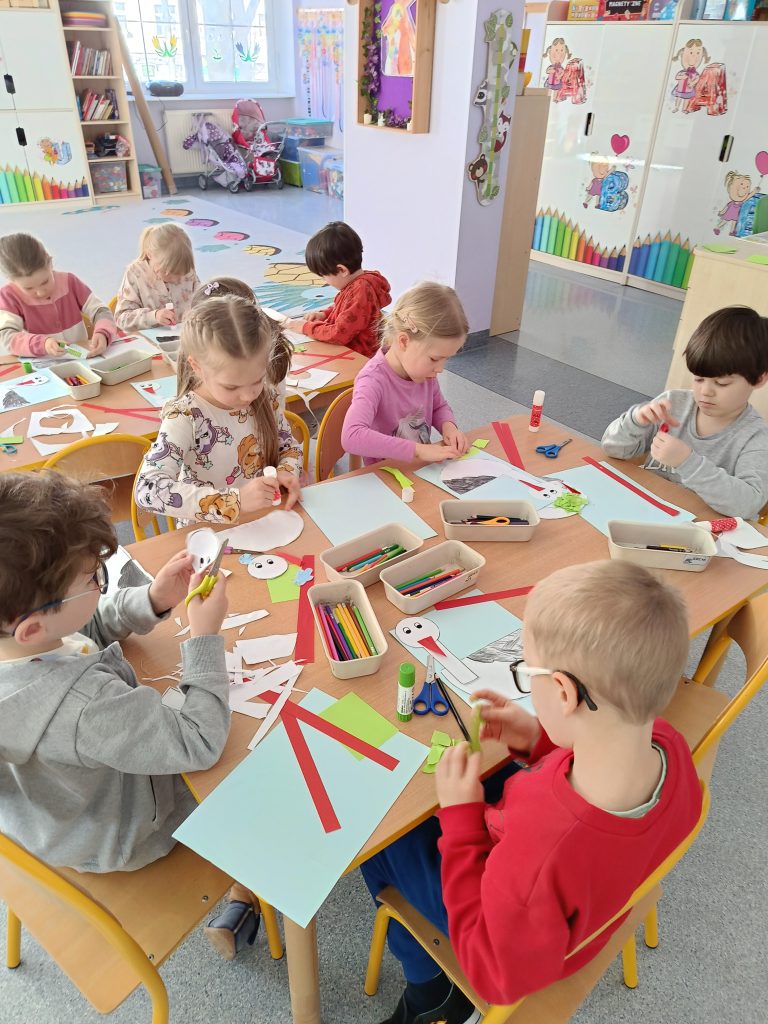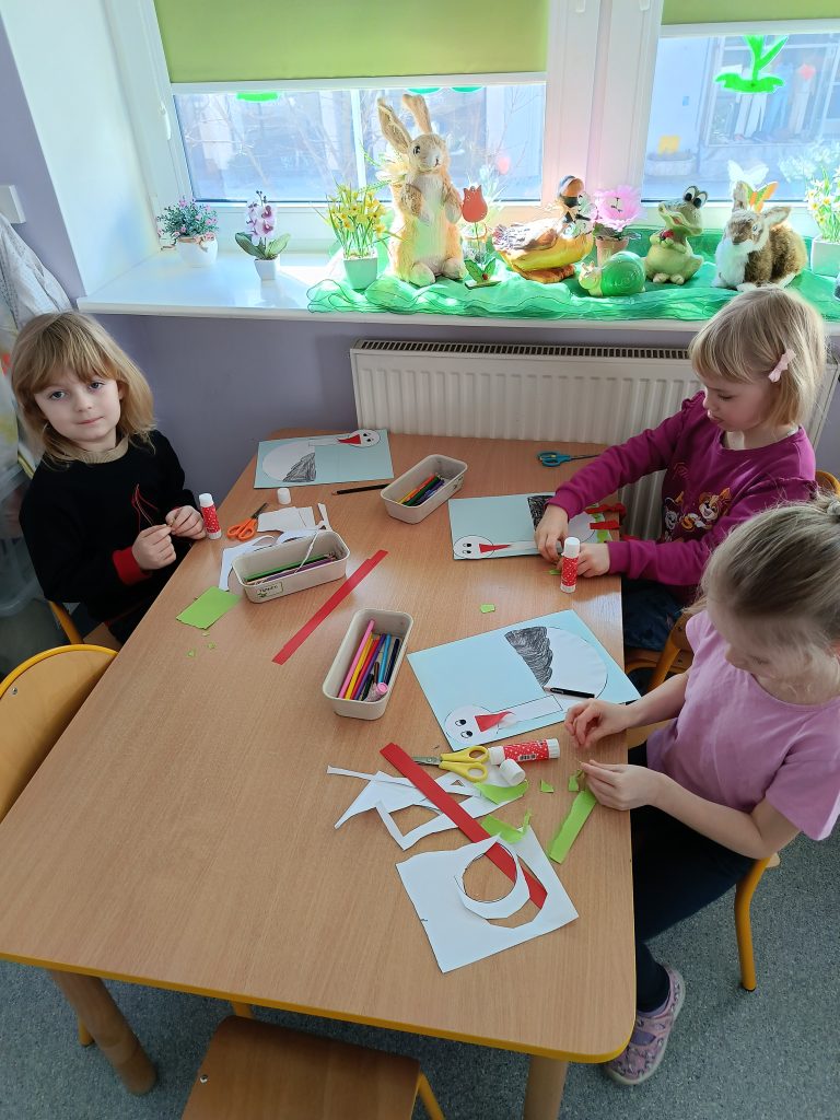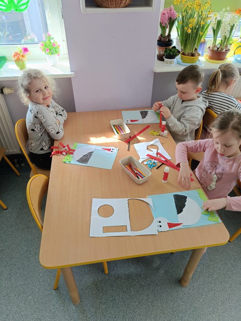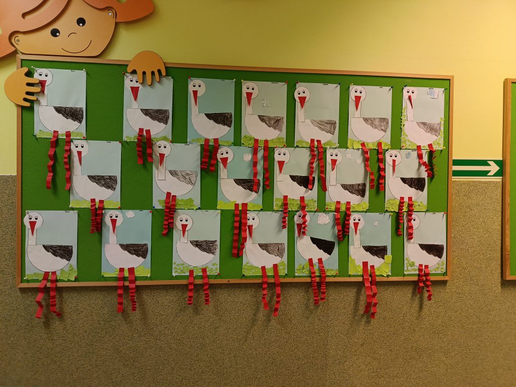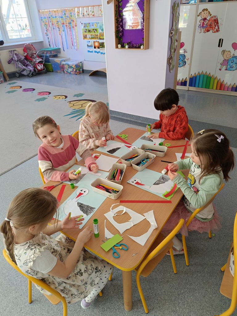 AKTUALNOŚCI, GRUPA LAWENDOWA Wiosenne Ptaki 02/04/2025 / „Pytała żabka bociana, Co robi na łące z rana. Na to bocian: „Kle, kle, klem, Nie wiesz, że śniadanie jem?” Nasze bociany, również szukają pysznych żabek na śniadanie