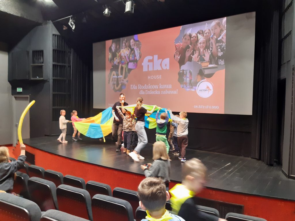 uczestniczyliśmy we wspólnej zabawie ruchowej z animatorami z  Fika House i Studia