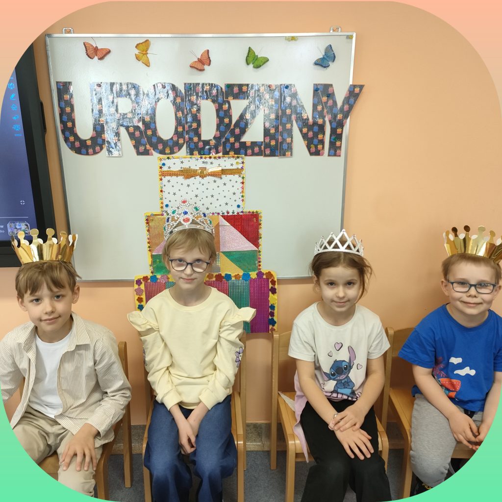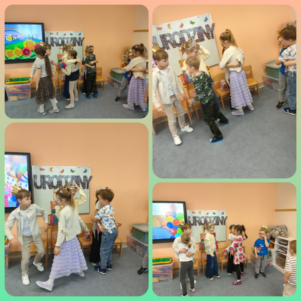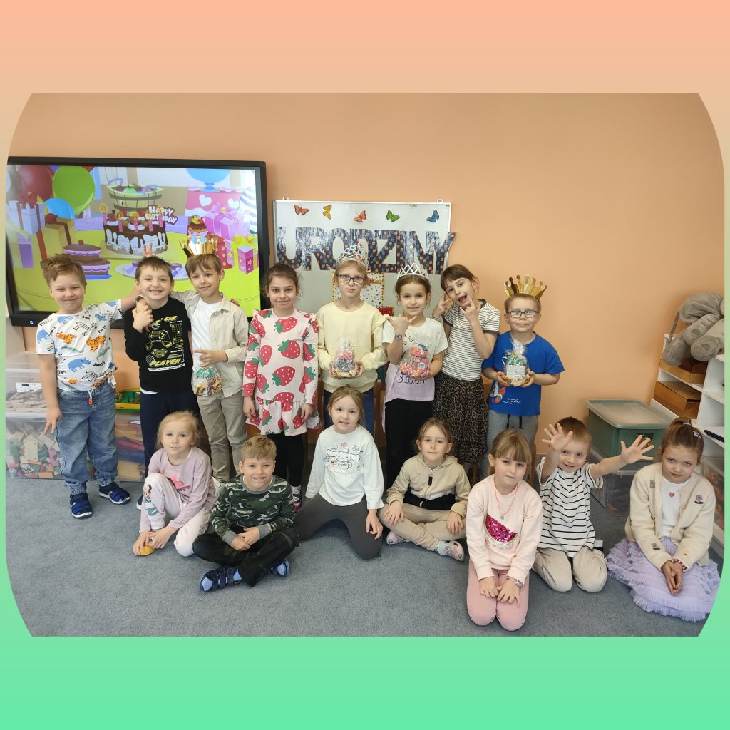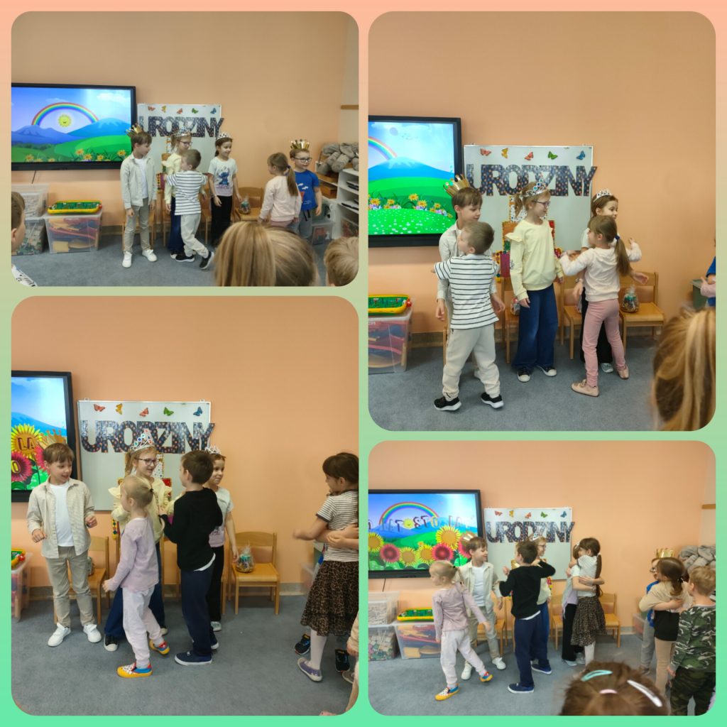 AKTUALNOŚCI, GRUPA POMARAŃCZOWA Urodzinki Marcowe 03/04/2025 / Na koniec miesiąca naszym zwyczajem świętowaliśmy urodzinki dzieci urodzonych w marcu Julii, Oliwii, Piotrka i Julka. Tradycyjnie były życzenia, prezenty i słodki poczęstunek.