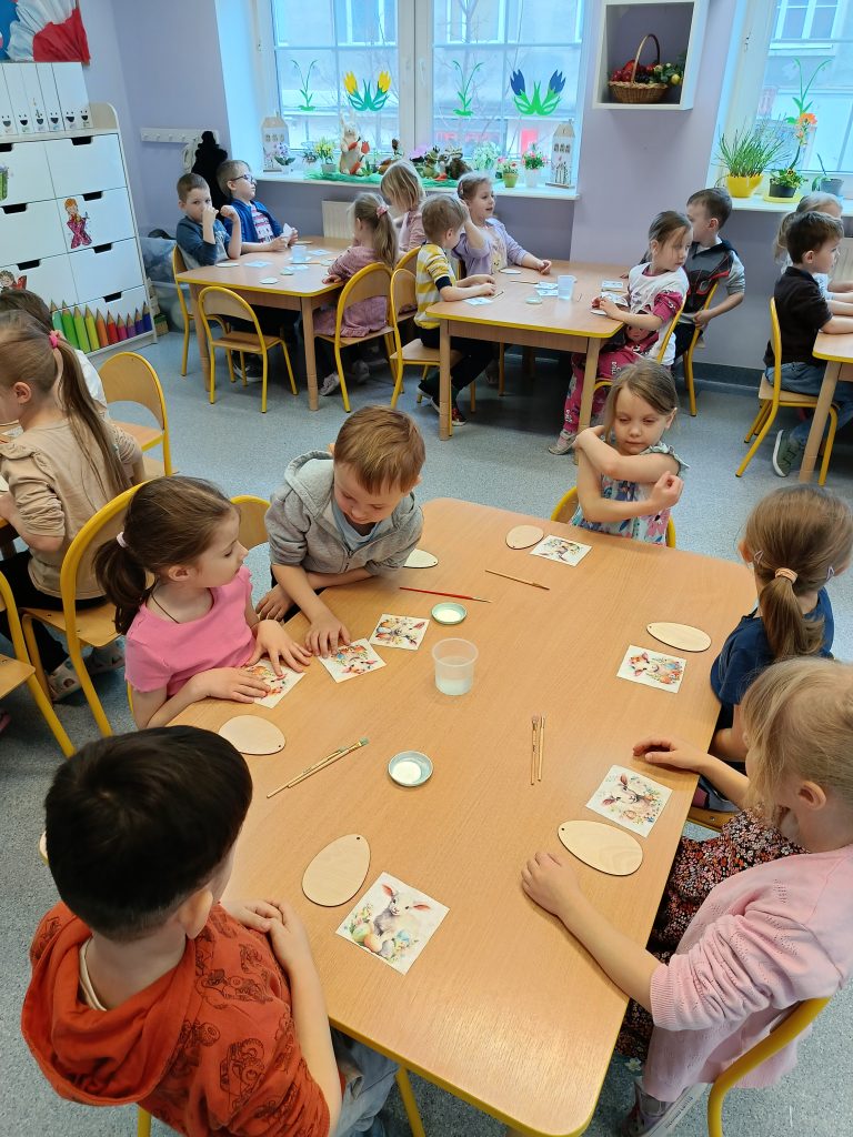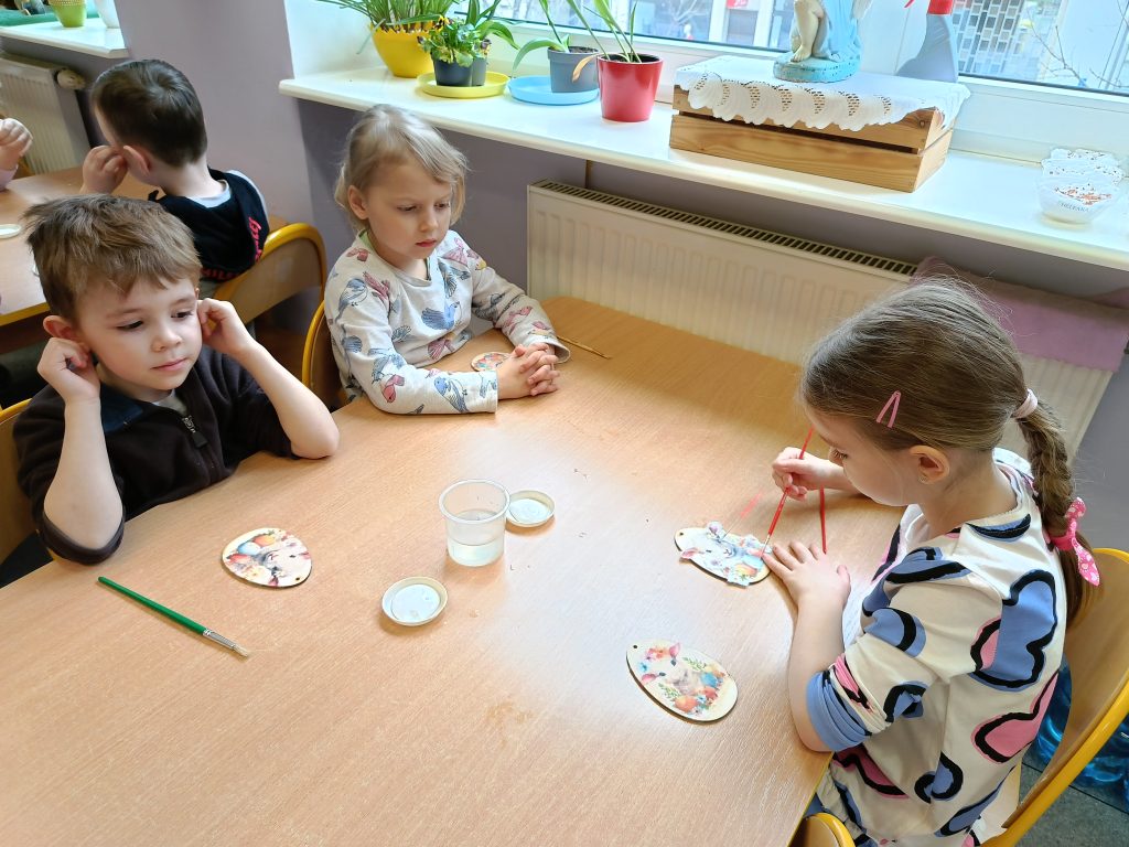 W minionym tygodniu mieliśmy przyjemność gościć Panią Katarzynę Bork, która poprowadziła dla nas dwudniowe warsztaty wielkanocne. Podczas warsztatów przybliżono nam technikę decoupage, która jak się okazało wymaga dużo spokoju i opanowania. Dzieci samodzielnie wykonały pisanki wielkanocne, które mogły zabrać do domu. Efektem naszych warsztatów były naprawdę piękne prace. Dziękujemy za poświęcony czas.