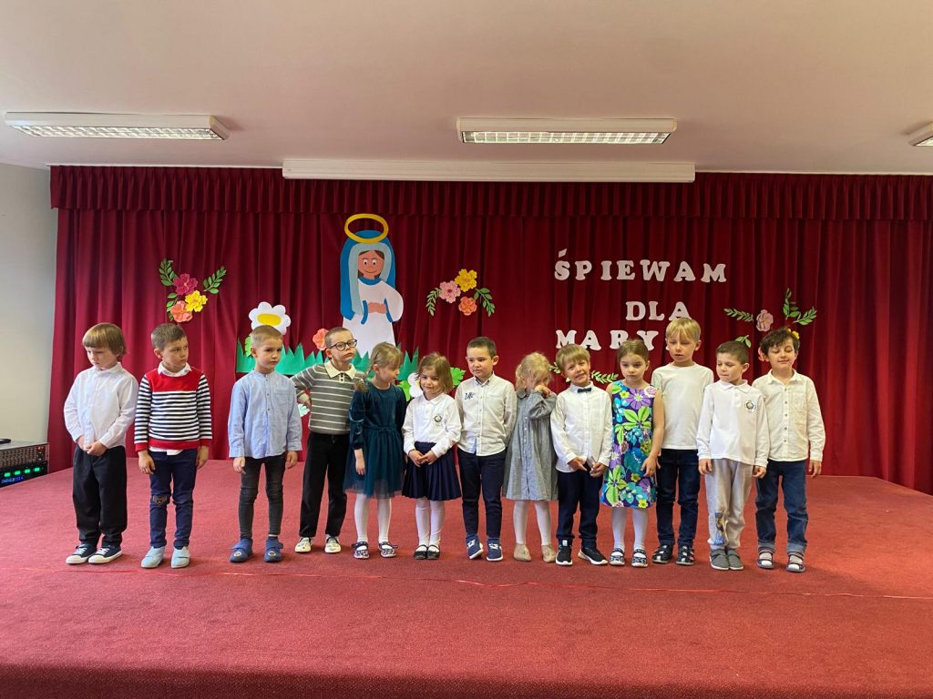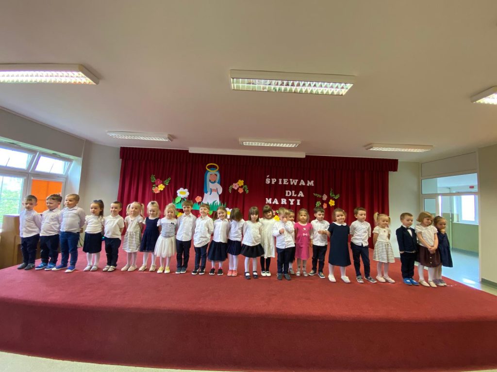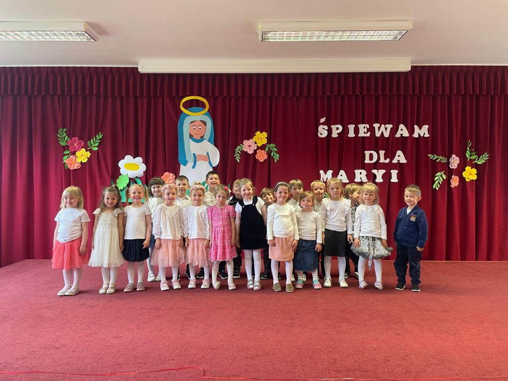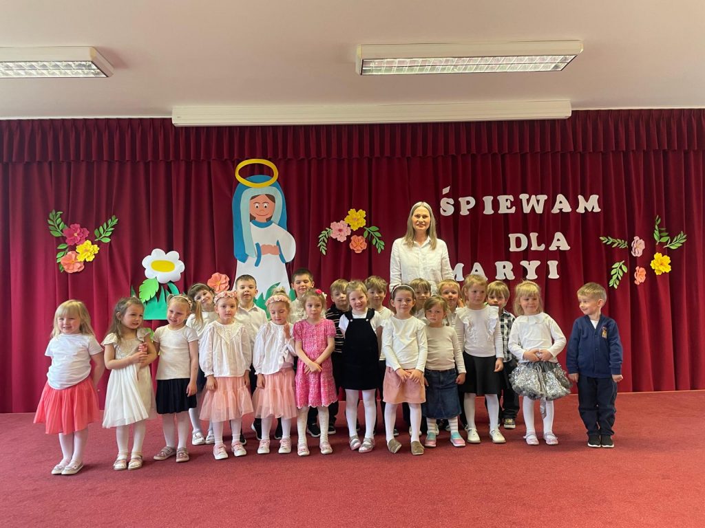 13.05.2025 roku we wtorek we wspomnienie Matki Bożej Fatimskiej w naszym przedszkolu odbył się Przegląd Piosenki Maryjnej. Dzieci z każdej grupy przygotowały i zaśpiewały piosenkę dla Maryi, gdyż dla nas Maryja jest bardzo ważną Osobą i uczymy dzieci miłości do naszej Niebieskiej Mamy. Na koniec wszyscy razem oddaliśmy swe serca Maryi w modlitwie ,,Zdrowaś Maryjo”.