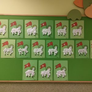 W ostatnim tygodniu przed świętami bardzo dużo rozmawialiśmy o tradycjach i zwyczajach świątecznych. Poznaliśmy znaczenie pokarmów wkładanych do koszyka wielkanocnego, który w Wielką Sobotę świecimy w kościele. W ramach zajęć plastycznych wykonaliśmy baranki…